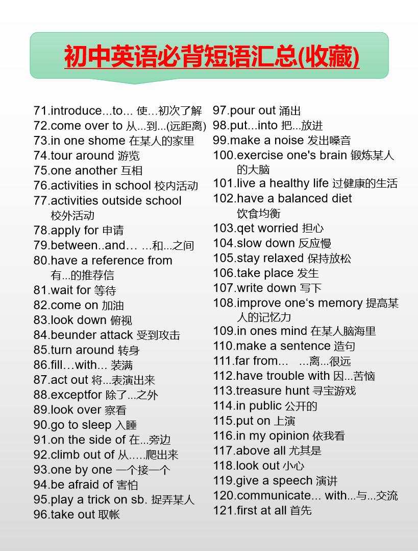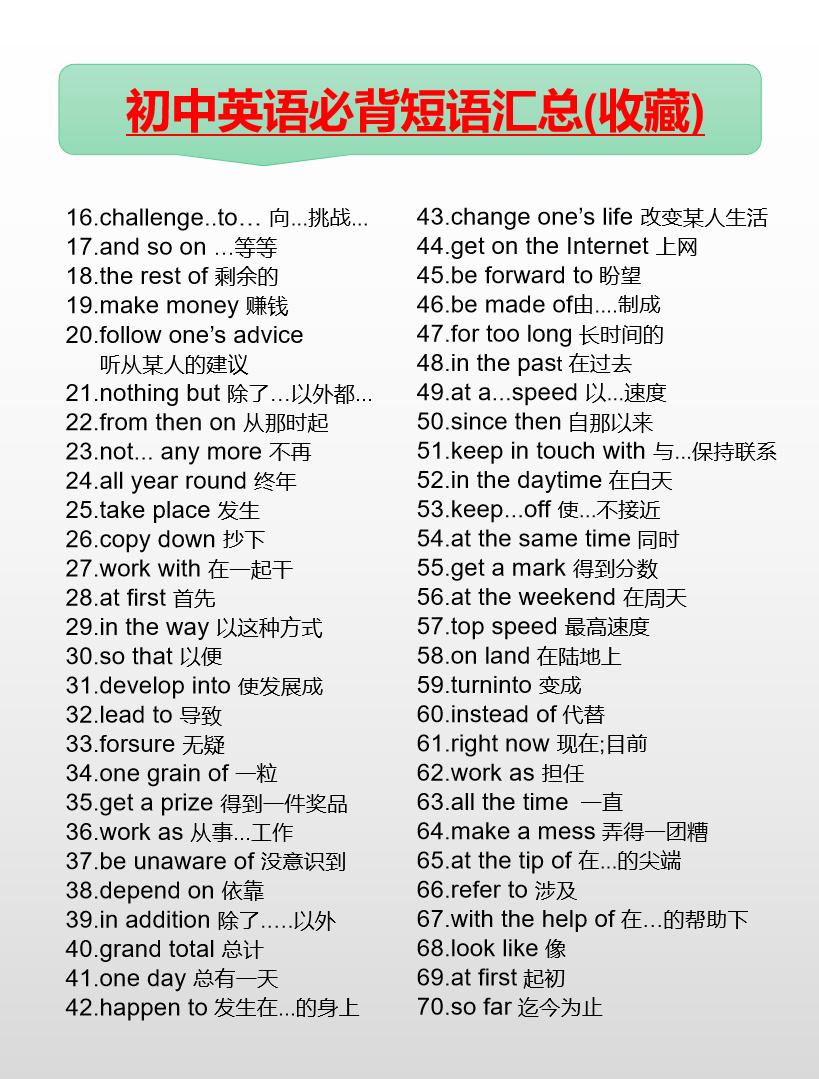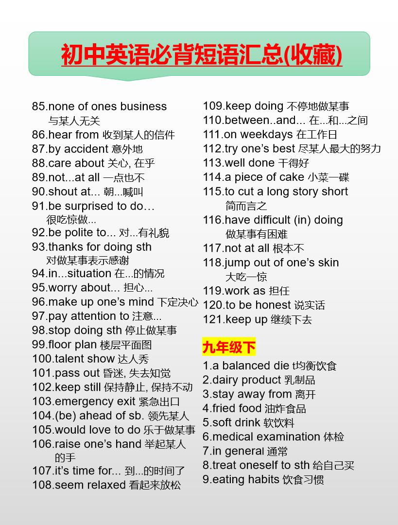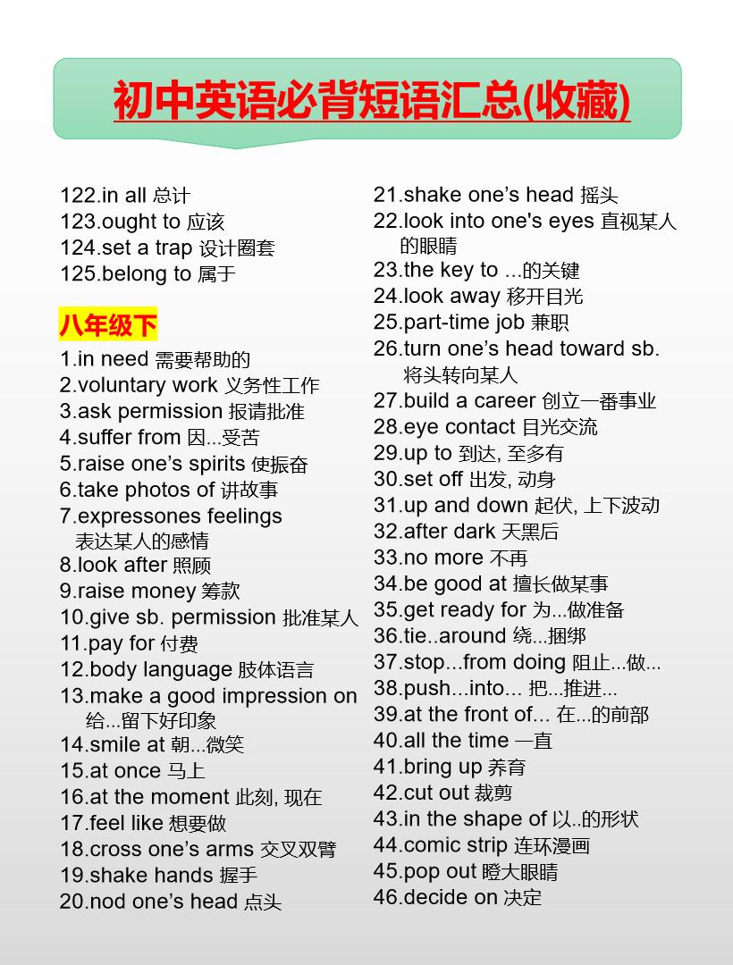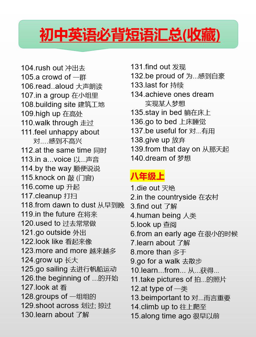 初中英语必背短语汇总(7-9年级)英语 初中英语 知识分享 中考