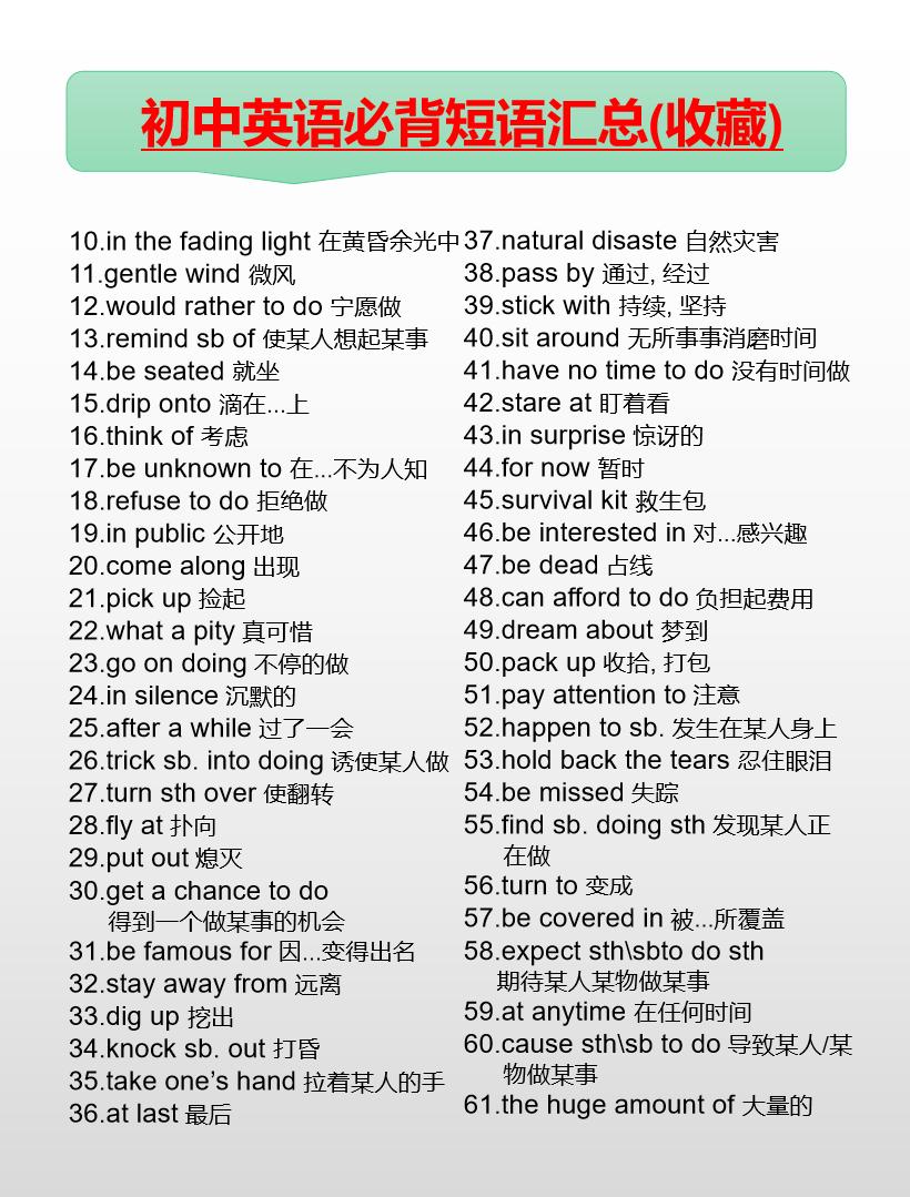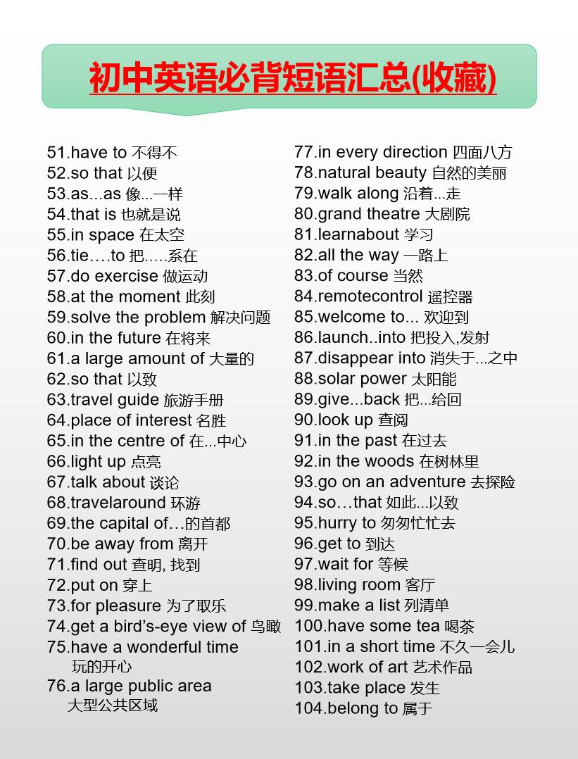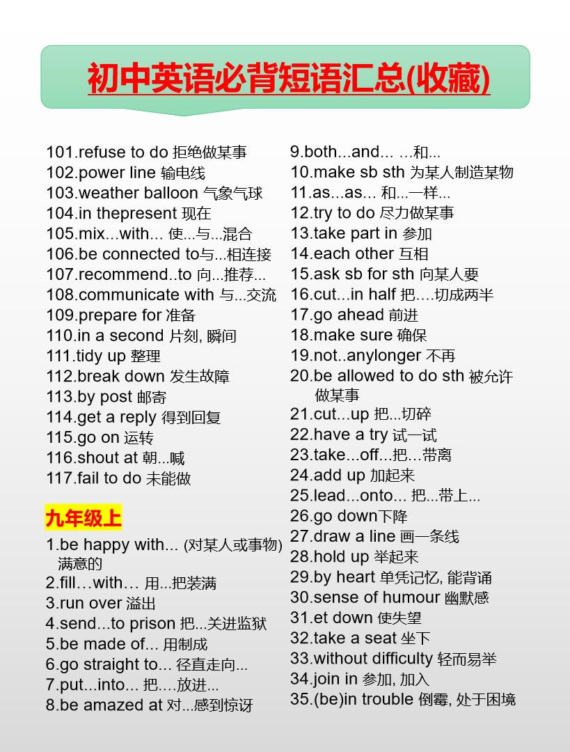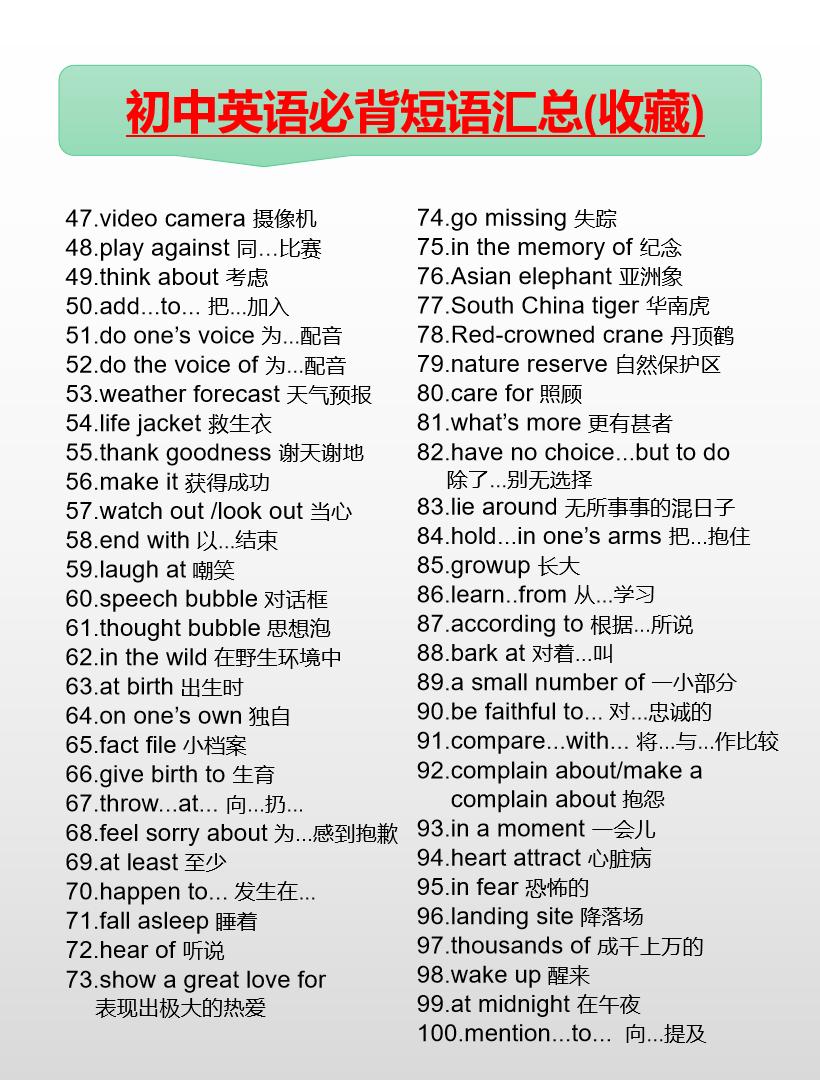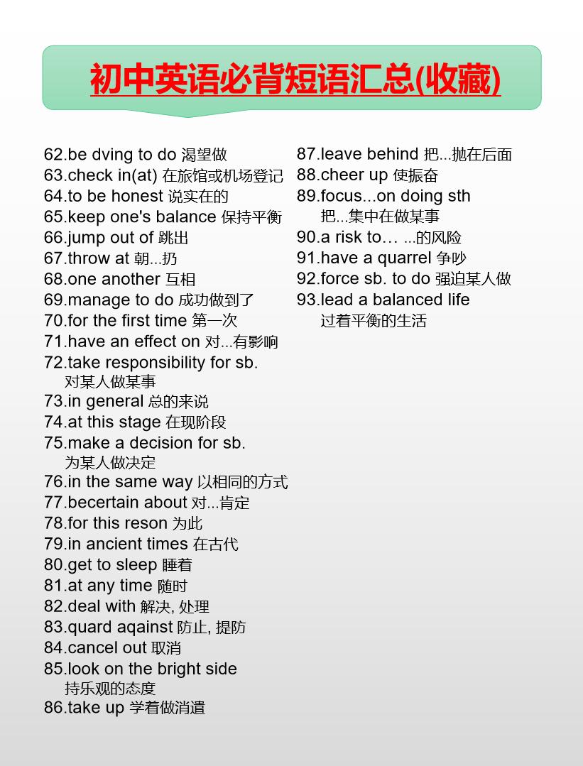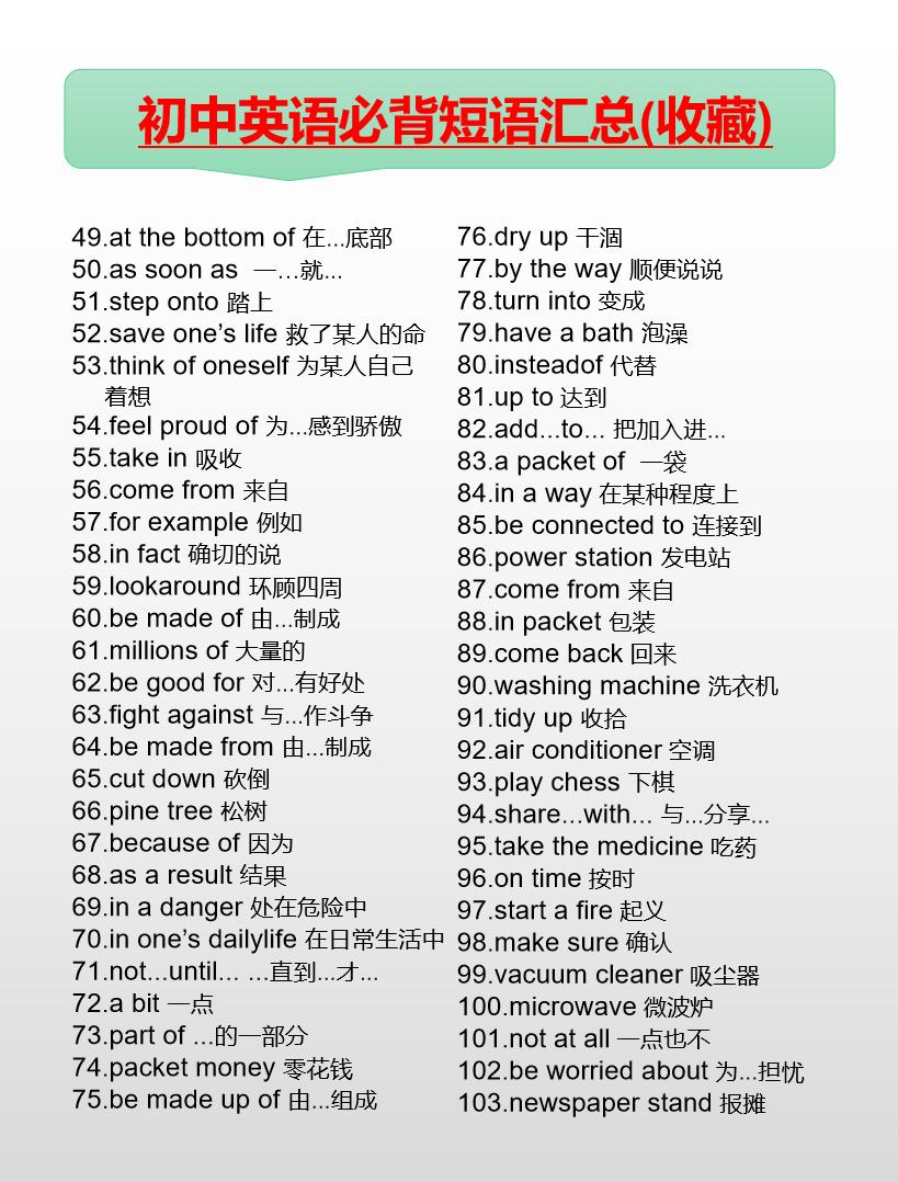 初中英语必背短语汇总(7-9年级)英语 初中英语 知识分享 中考