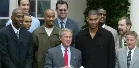 邓肯是联盟历史上唯一接见三名总统却始终不打领带的球员。 联盟历来有个惯例,就是年度总冠军要去白宫跟总统见面,对于其他球员来说,那是美国总统接见他们,所以必须要隆重庄严,那是总统给他们面子。 但是到了邓肯这里不是,他是来接见美国总统的人,所以反过来这是总统的荣幸,他们要穿着正式,自己随便穿什么都行。 从克林顿到小布什,邓肯是队内唯一始终穿着便服的人,他根本不在乎要给国家总统这个面子。 到了最后一次,面对跟自己一样的黑人奥巴马,邓肯才第一次穿上了休闲西服给他点面子,但是继续不系领带,奥巴马对此也不介意,他还特地开邓肯一句玩笑:这老家伙都有白头发了。
