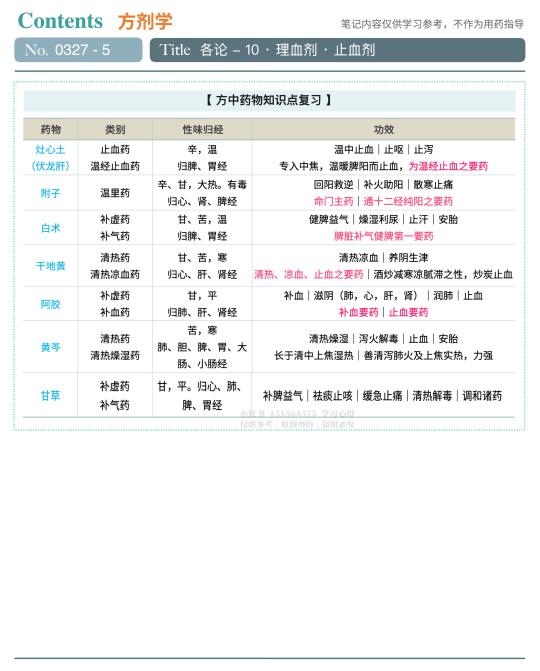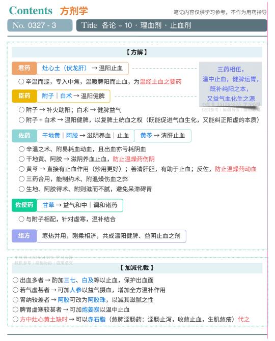 【 特点 】寒热并用,标本兼顾,刚柔相济;以刚药温阳而寓健脾,以柔药补血而寓止血