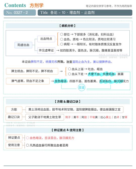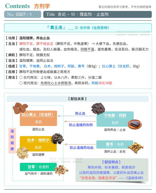 【 方歌 】黄土汤将远血医,胶芩地术附甘随,温阳健脾能摄血,便血崩漏服之宜