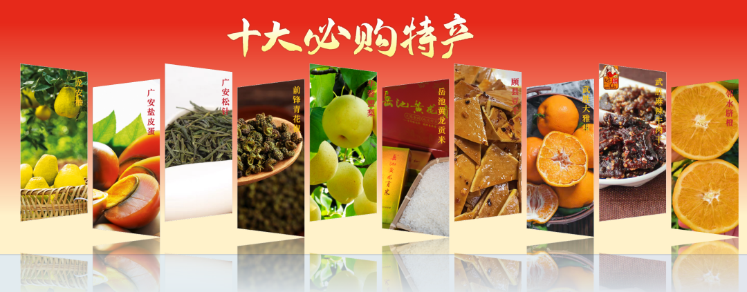 岳池米粉是广安人早餐的首选。它口感细腻,汤鲜味美,配上各种调料和臊子,味道十分丰富。无论是老人还是小孩,都对岳池米粉情有独钟。此外,还有桂兴羊肉、华蓥山卤笋、武胜豆花、麻哥面、渣渣鱼、邻水肉汤圆等十大必吃美食,以及龙安柚、广安盐皮蛋、广安松针、前锋青花椒、华蓥蜜梨、岳池黄龙贡米、顾县豆干、武胜大雅柑、武胜麻辣牛肉干、邻水脐橙等十大必购特产,让游客们在赏美景、享乐趣的同时,也能把纯正的“广安年味”带回家。