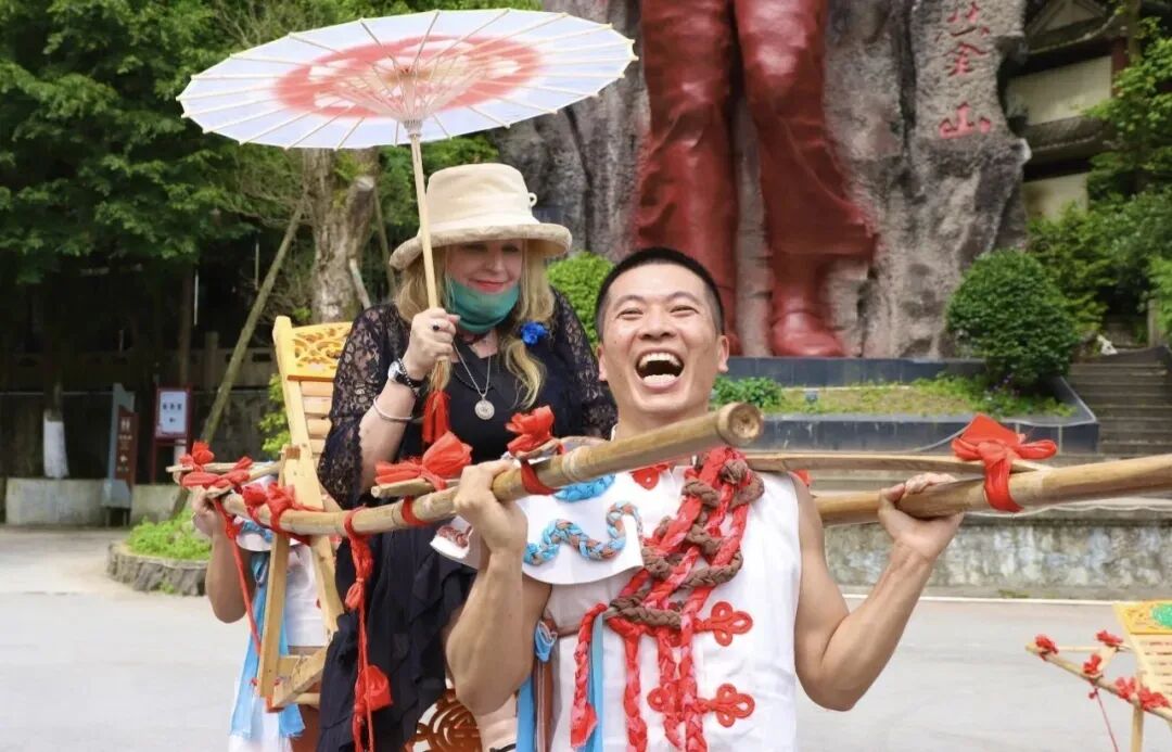 “华蓥山滑竿抬幺妹”这一国家级非物质文化遗产也在春节期间精彩亮相。起源于唐宋时期华蓥山庙会祈福习俗的它,承载着当地民众祈求丰饶、乐观坚韧的生活智慧。“幺妹”则身姿优雅、笑容嫣然,在轻摇微颤中展现平衡技巧与柔美仪态。这不仅是对古老技艺的传承,更是对传统文化的致敬,让游客们在欣赏精彩表演的同时,也能感受到广安深厚的文化底蕴。
