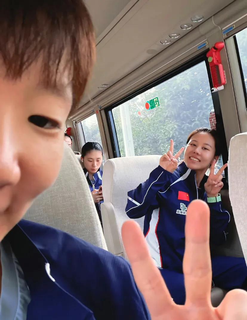 第五张照片十分经典,在车上王曼昱拿出手机拍照,难得掌镜,自己是剪刀手,陈幸同是双剪刀手和露出白白的牙齿,笑的很开心,两人很好,希望一直保持下去,友谊长存。