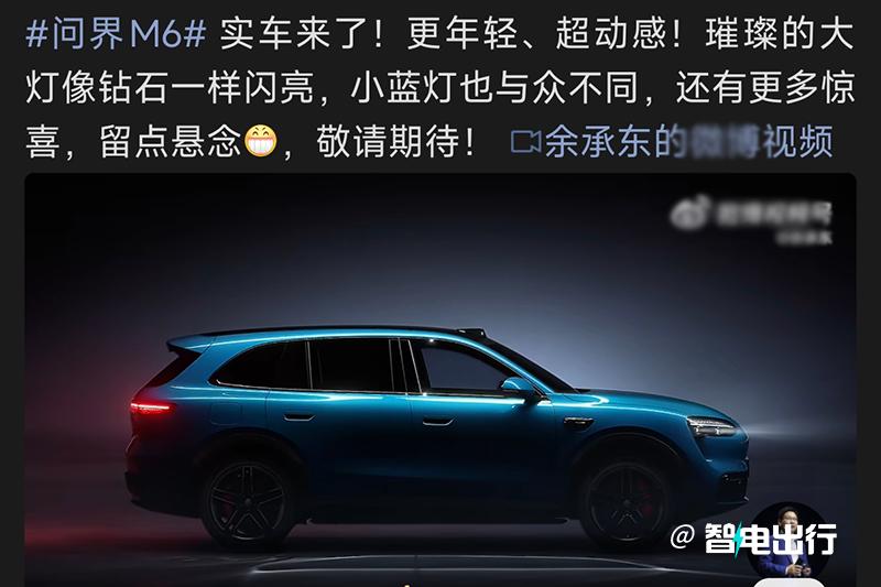 2月3日,余承东发了条微博,问界M6正式亮相,该车最近在第404批的“工信部车展”上也开始公示。
