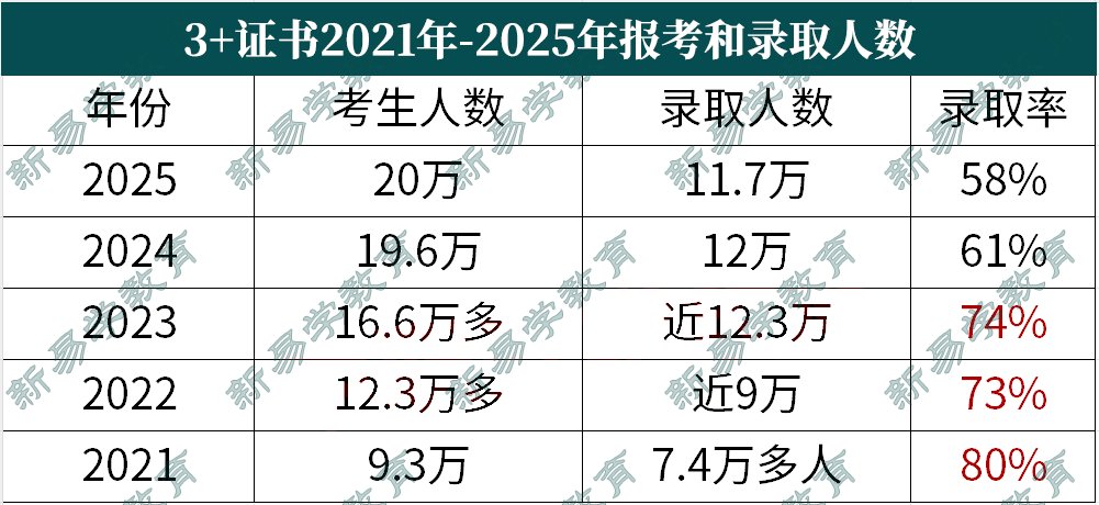 报考人数首年下降,整体规模趋于稳定与高分段人数暴涨形成鲜明对比的是,今年报考人数出现了近年来的首次下降。根据网传0分考生排位,2026年“3+证书”考试零分排位为199408名,这意味着今年报考人数约为19.9万人,较2025年的20万人略有减少,打破了连续多年的增长趋势。