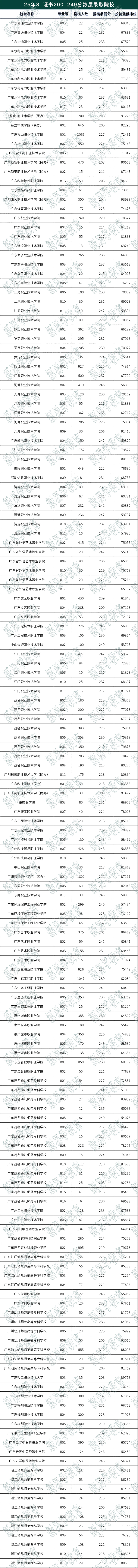 200-249分是公办院校录取的集中区间,共有51所院校的160个专业组,投档最低排位在53703-97576之间。