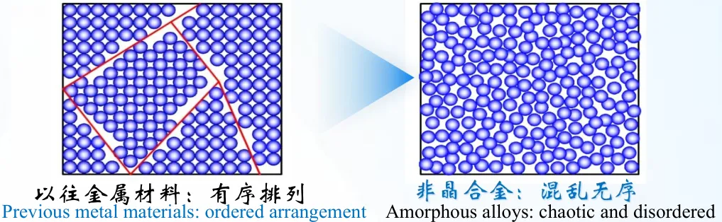 图:非晶合金原子排列示意