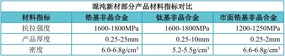 江苏混沌新材料科技有限公司(简称“混沌新材”),拥有从非晶合金材料合成开始到产品精密成型的全套技术,依托自研“全周期气氛保护压铸法”及其核心装备,混沌新材率先实现2厘米厚度非晶合金块材的工业化,可以提供锆基、钛基、铜基等多种材料体系,多达200余种材料配方,获得非晶合金领域国际顶级权威专家、美国两院院士、加州理工学院教授W.L.Johnson的高度评价。