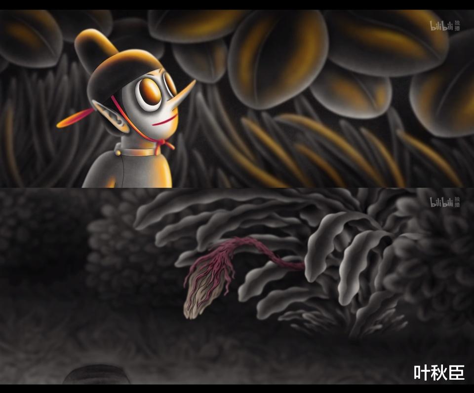 主角依旧是书生,不似周身都有鲜艳颜色能够自由飞翔的鸟儿,与之相关的色调普遍以黑白灰为主,暗指其是被压抑欲望的存在。