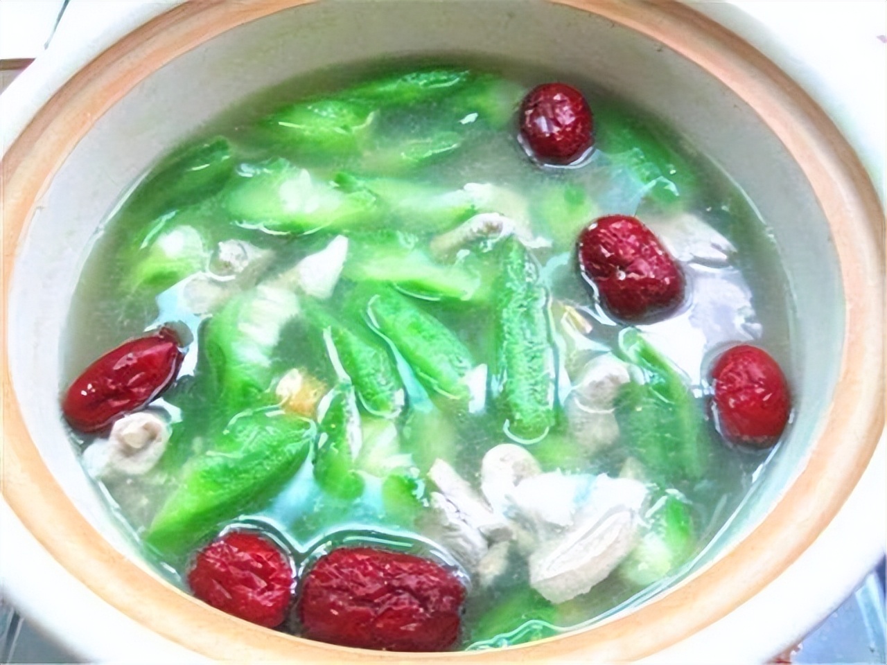 黄瓜肉丁丝瓜汤