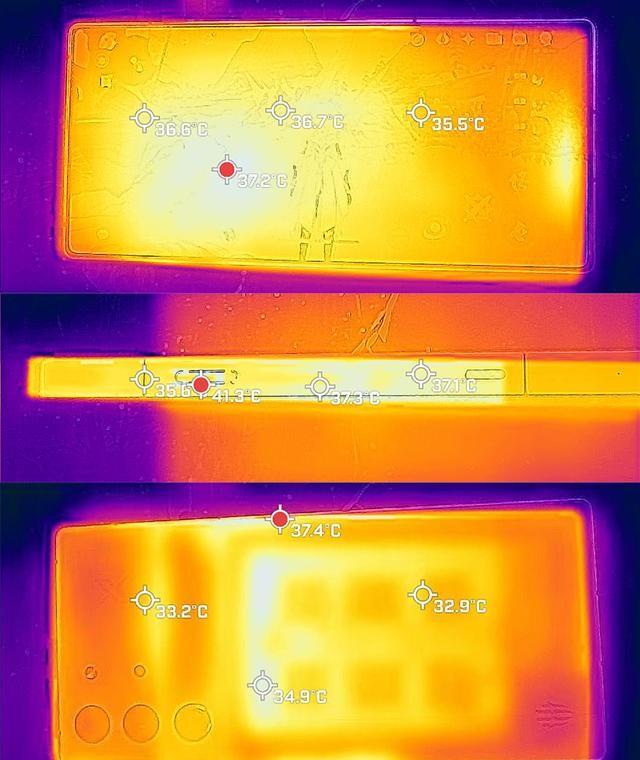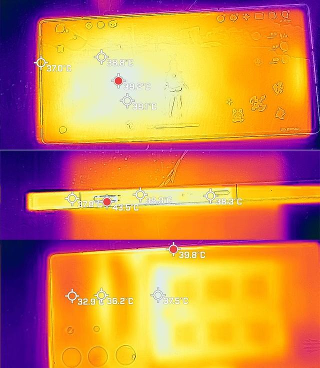 在从2K分辨率降低到1.5K分辨率之后,《原神》的发热感受也没有上一次那么明显,我们测试其握持戳碰区域温度大约在37℃。