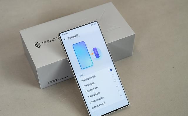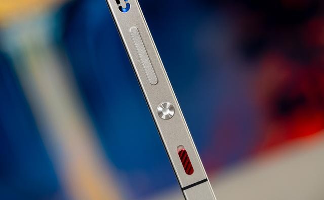 手机右侧边框中间是圆形的电源按键,旁边还有深红色的游戏竞技键,在边框的两侧还有游戏肩键。当然,无论是竞技键还是游戏肩键,都可以在系统中自定义功能,比如将竞技键更改为手电筒、录音机等功能。