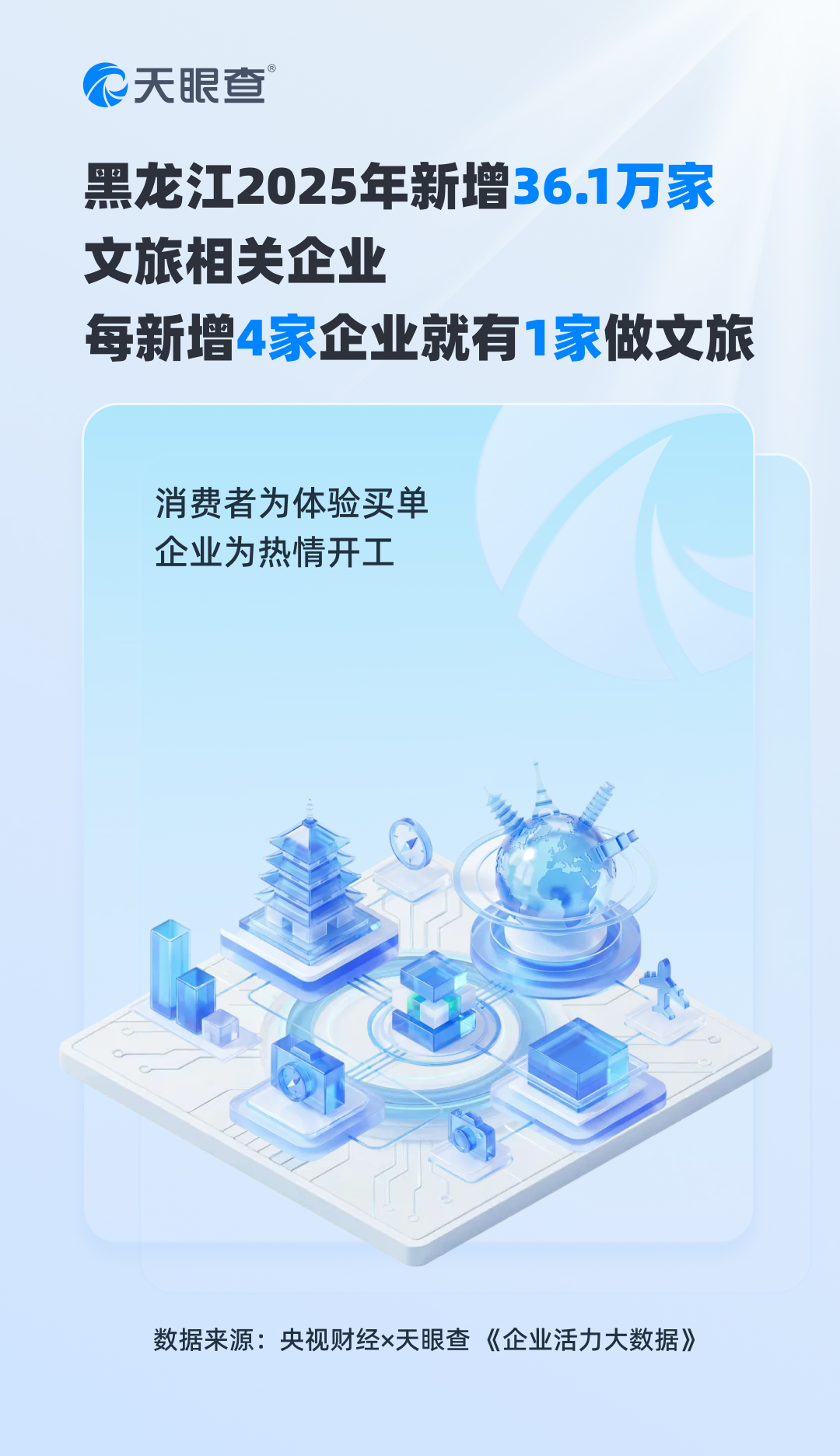 天眼查数据显示,2025年仅文体娱乐、租赁和商务服务、住宿和餐饮四大领域,黑龙江就新增36.1万家企业,占全省所有新增企业的1/4,即每新增4家企业,就有1家与文旅产业相关。从"网红打卡"到"长红产业",消费者愿意为优质体验买单,企业便顺势而为,这就是市场的力量。