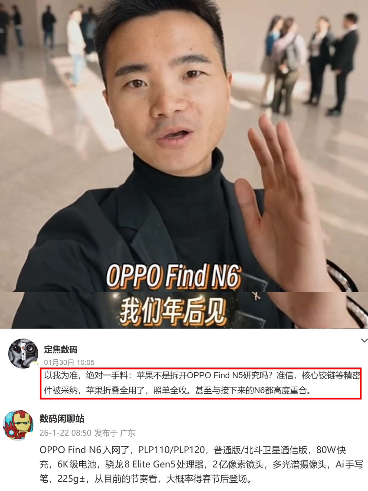 就像折叠屏这块,苹果都要发布了,其它厂商肯定要加大力度,大趋势就是优化折痕,苹果的重点也放在这,专门买了OPPO Find N5回去拆机研究,用上Find N6同款供应链核心技术,主打一个你成熟了我就用!