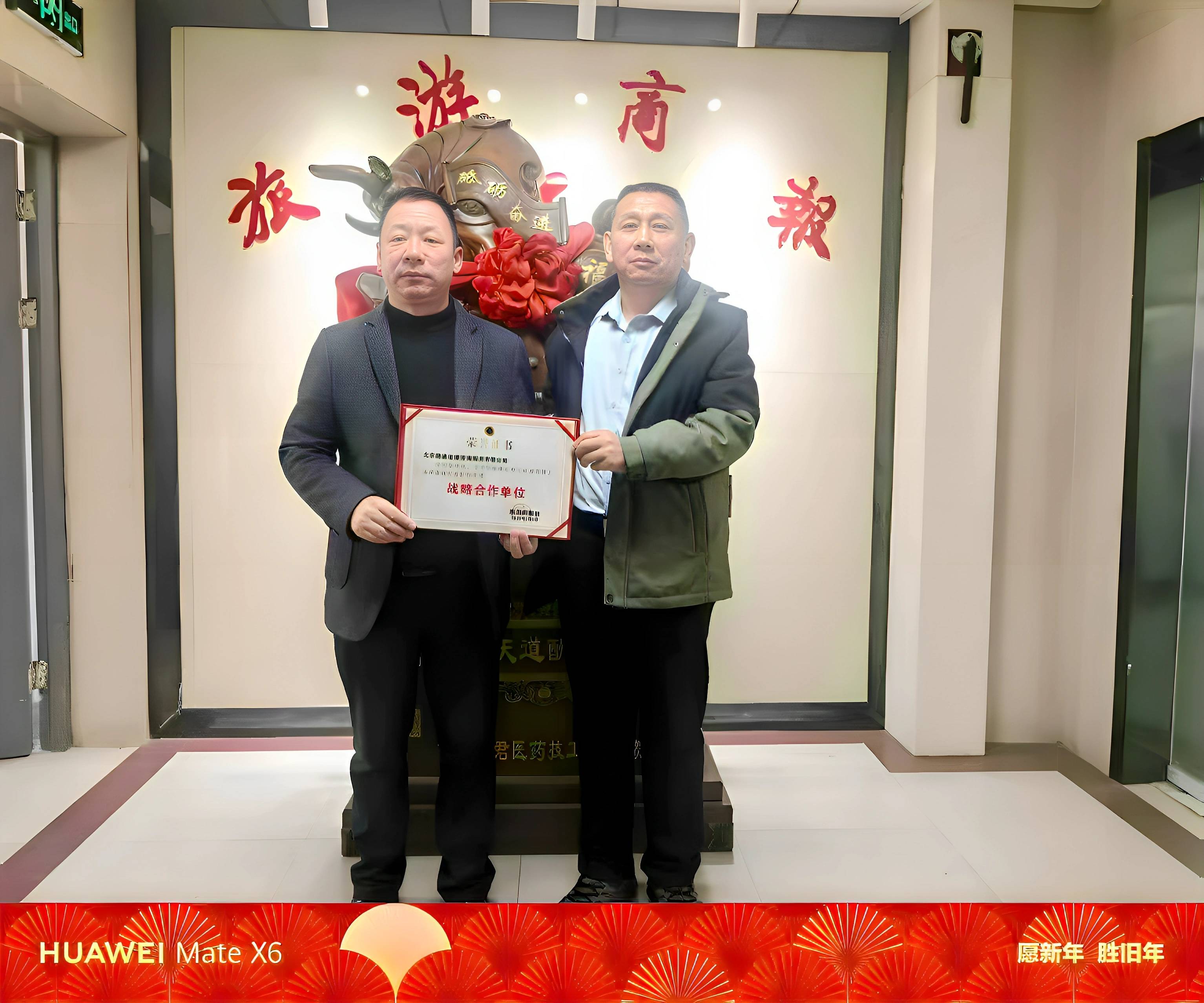图为2026年新年伊始 旅游商报社融媒体中心、社长杜哲正在给我司达成战略合作单位的授牌仪式