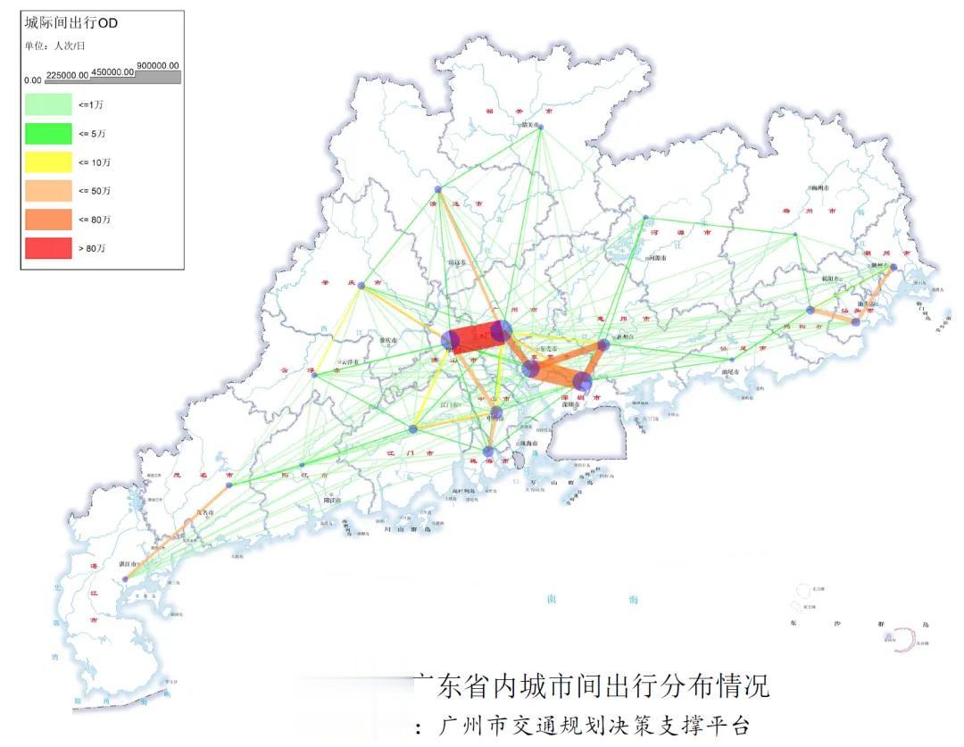 其中,广佛两市间日均出行量189.6万人次,深莞之间133.5万人次,广莞、广深之间分别为50.7万、23万人次。