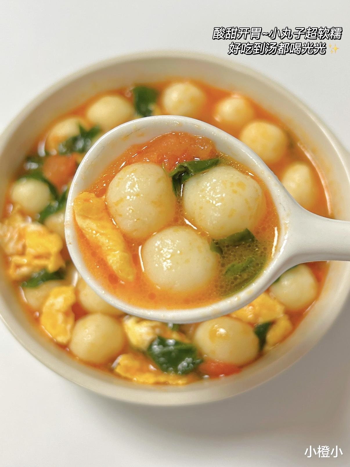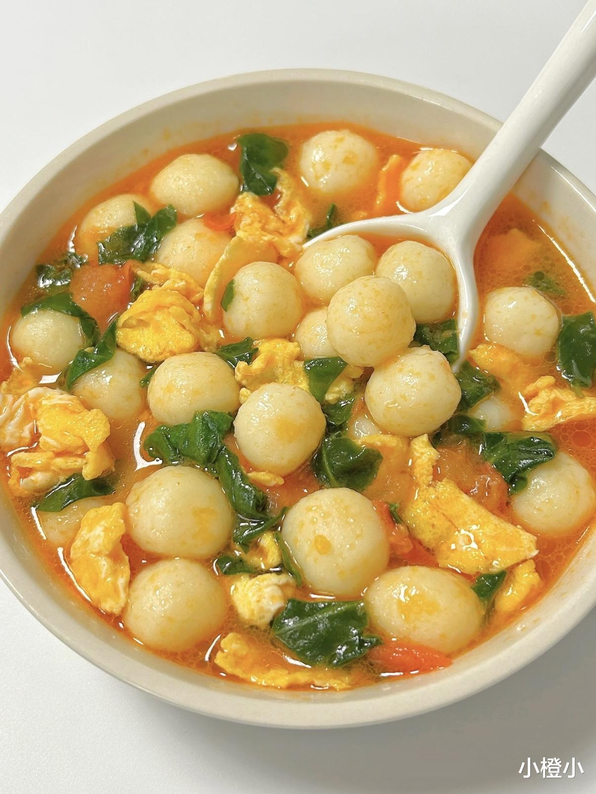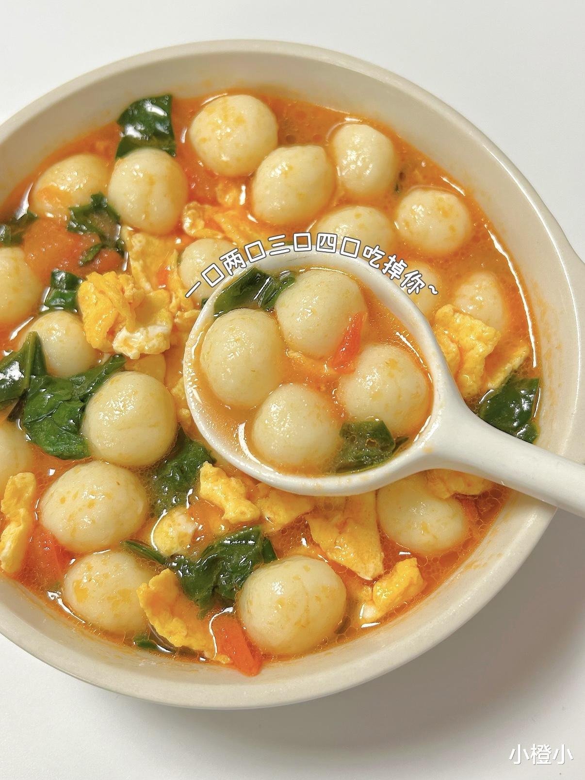 当冒着热气的汤碗端上桌,金黄的小丸子在红汤里咕嘟咕嘟跳舞,舀一勺送进嘴里,先是番茄的酸甜在舌尖炸开,接着是山药的绵软温柔包裹味蕾,最后菠菜的清新收尾,层次感丰富得像在吃高级料理!我家娃每次都能把汤喝得一滴不剩,连碗底的小丸子都要用勺子刮干净~