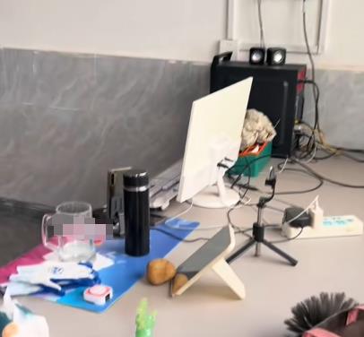 在他的家里面,有一个新装修的屋子,里面的装修其实也很简单,就是一台电脑和两部手机,桌子上放了他的水杯和一些其他的东西,基本上是没有其它多余的东西了。