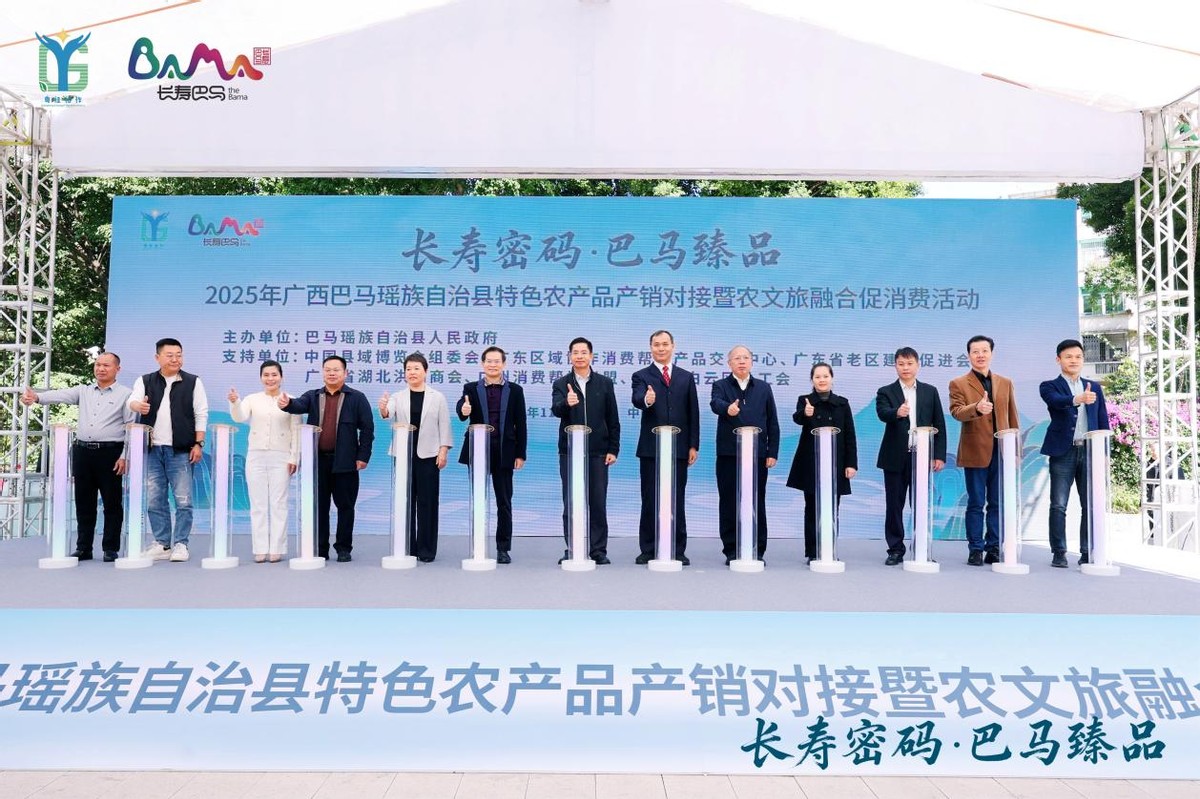 寿乡臻品润湾区,粤桂协作结硕果。为期两天的“长寿密码・巴马臻品”2025年广西巴马瑶族自治县特色农产品产销对接暨农文旅融合促销费活动,于11月21日在广东区域协作消费帮扶产品交易中心隆重开幕。开幕式当天,来自粤桂两地政府部门、专家学者、采购企业、电商平台及主流媒体等百余位代表齐聚现场,通过产销精准对接、农文旅资源联动,一举达成农产品采购及农文旅合作意向金额超4000万元,为粤桂协作再添实效,推动巴马特色产业进一步融入大湾区市场。