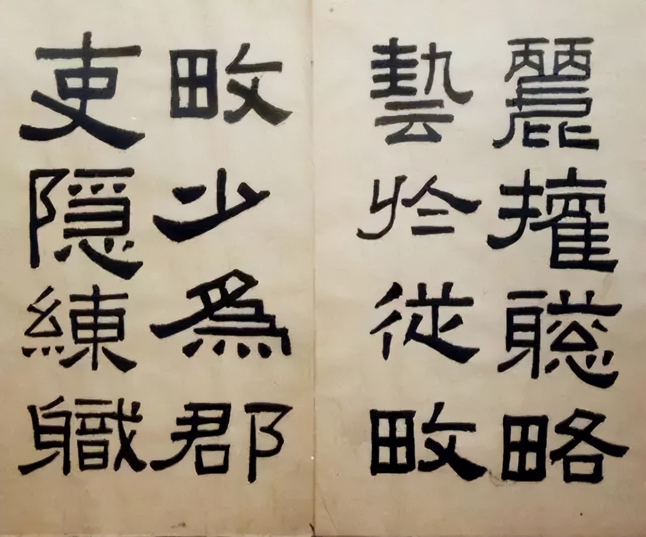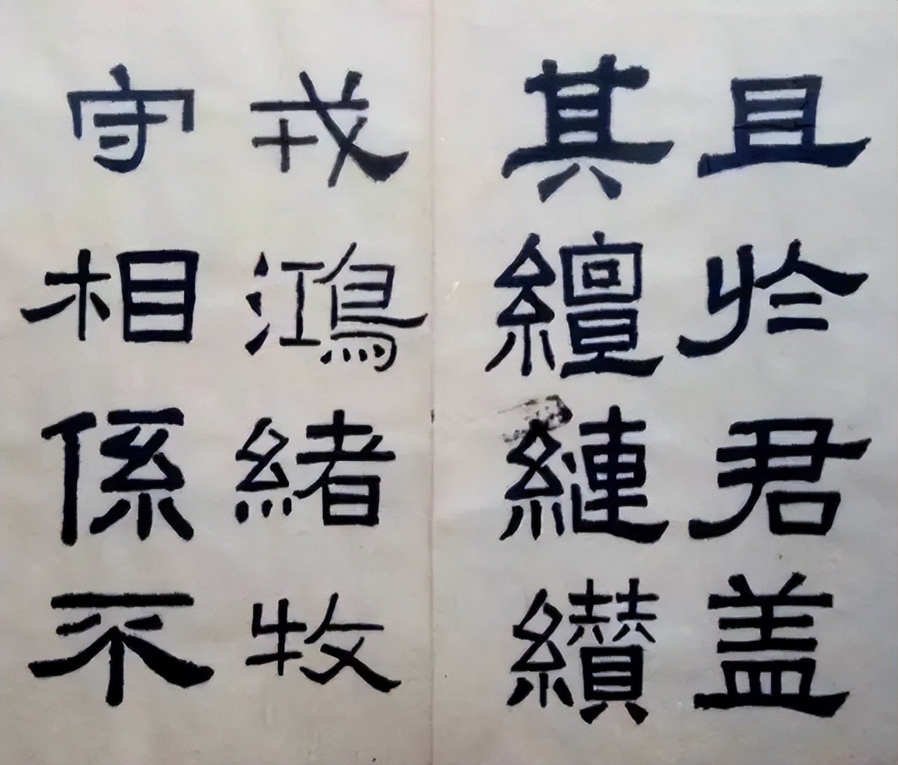 在结构方面,林散之充分领悟了《张迁碑》结体茂密、方整多变的特点。他巧妙地处理了字与字之间的疏密关系,使得整个作品在和谐统一中又富有变化。有的字笔画较多,他能够将其紧密地排列在一起,却不显得拥挤;而对于笔画较少的字,他则能够通过合理的布局,让其在疏朗中展现出独特的韵味。比如在临写一些左右结构的字时,他会根据字的重心和笔画的分布,灵活调整左右两部分的大小和位置关系,使整个字看起来既平衡又富有动态美。