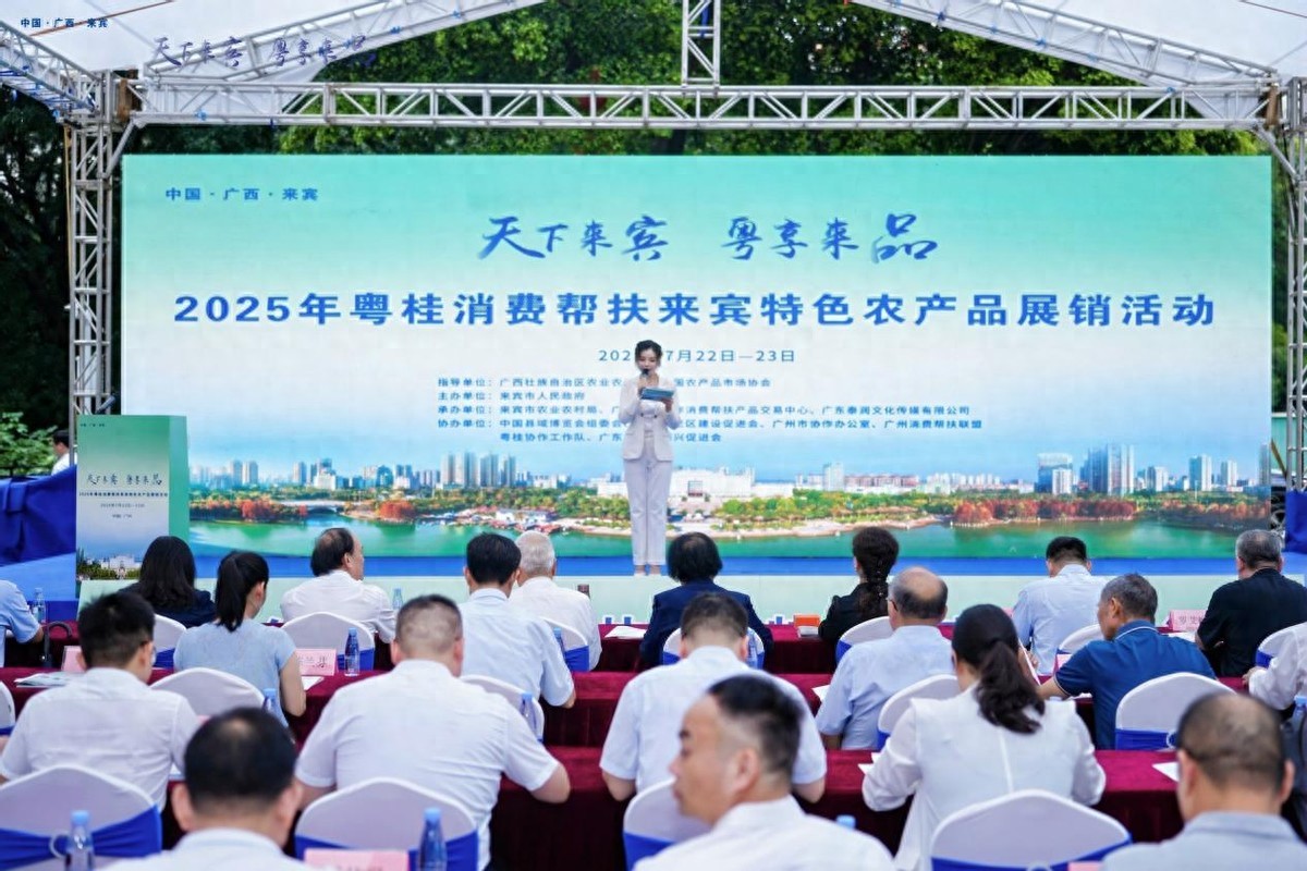 2025年7月22日至23日,“天下来宾 粤享来品”粤桂消费帮扶来宾特色农产品展销活动在广东区域协作消费帮扶产品交易中心(广东省广州市白云区机场路1111号)盛大举行。这不仅是一场农产品的展销盛会,更是粤桂两省(区)深化协作、携手共进,助力乡村振兴的战略行动。本次展销活动由广西壮族自治区农业农村厅、中国农产品市场协会指导,来宾市人民政府主办,来宾市农业农村局、广东区域协作消费帮扶产品交易中心、广东泰润文化传媒有限公司联合承办,中国县域博览会组委会、广东省老区建设促进会、广州市协作办公室、广州消费帮扶联盟、粤桂协作工作队、广东省乡村振兴促进会协办,各方力量汇聚一堂,共同谱写了粤桂协作的新篇章。