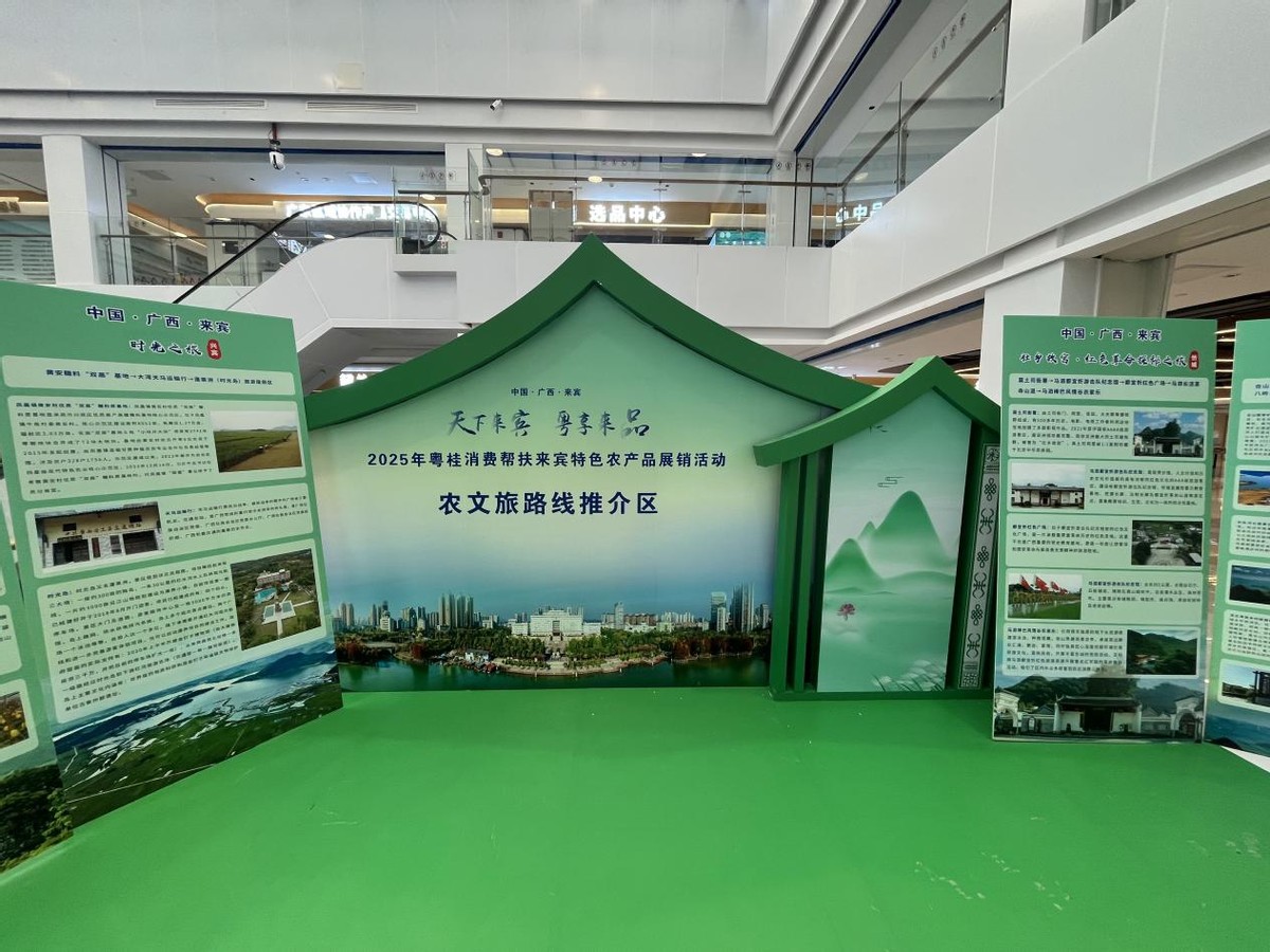 除了精彩的农产品展销和推介活动外,本次展销会还特别设置了农文旅融合展示内容。在交易中心二楼显著位置,通过图文展板和美陈设计等形式集中展示了来宾市丰富的民族文化体验、红色研学、生态康养等主题旅游线路,让参观者仿佛置身于来宾的山水之间,感受着这座城市独特的魅力。为来宾市的旅游产业宣传造势,也为农产品销售拓展了空间,进一步推动了“农业+文旅”的融合发展模式。通过农文旅融合,来宾市将特色农产品与旅游消费有机结合,打造了全方位、多层次的消费帮扶新模式,为乡村振兴注入了新的活力和动力。