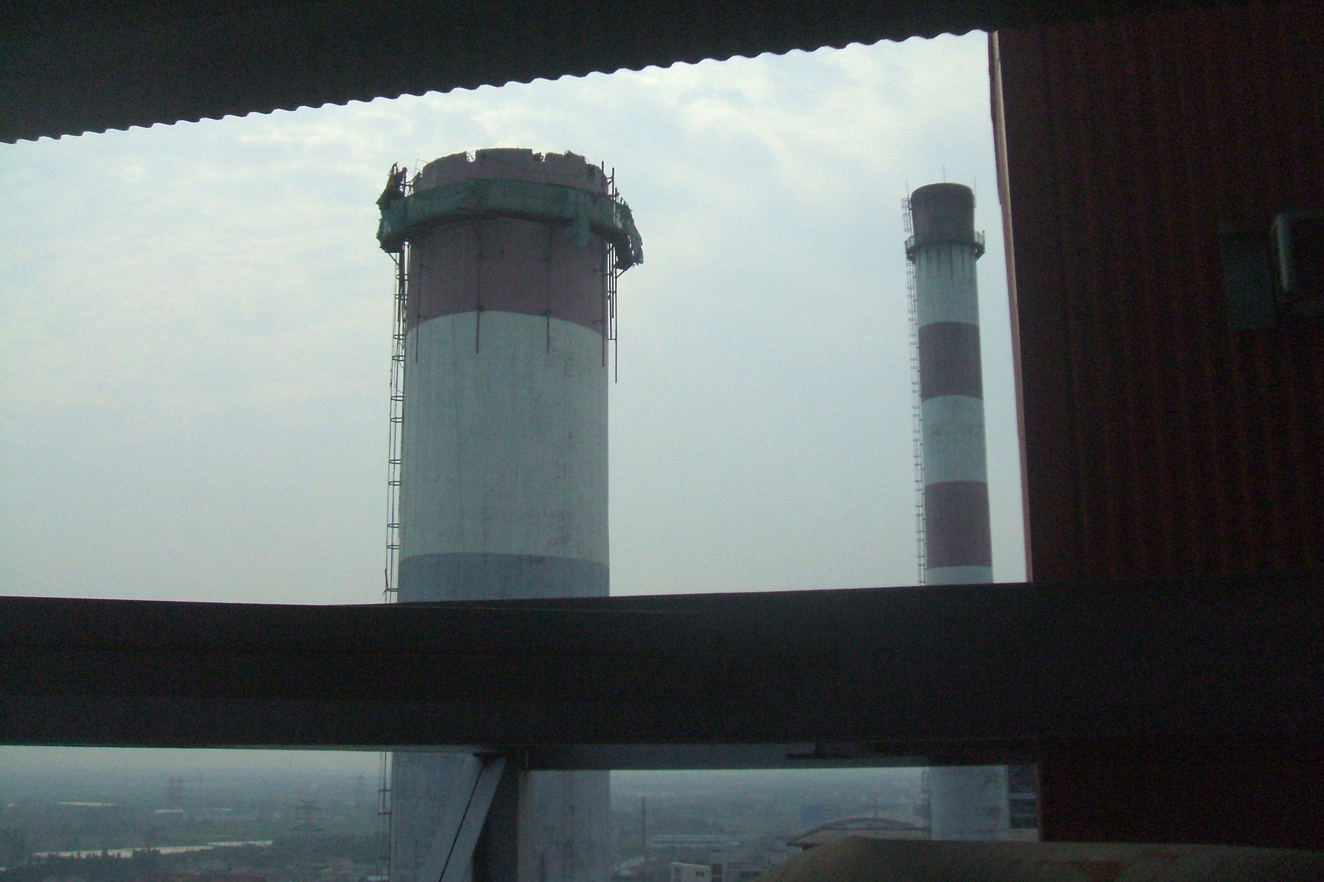 2.检查烟囱结构,搭设高空作业平台或吊篮,设置安全网、防坠生命线,验收合格后方可作业。