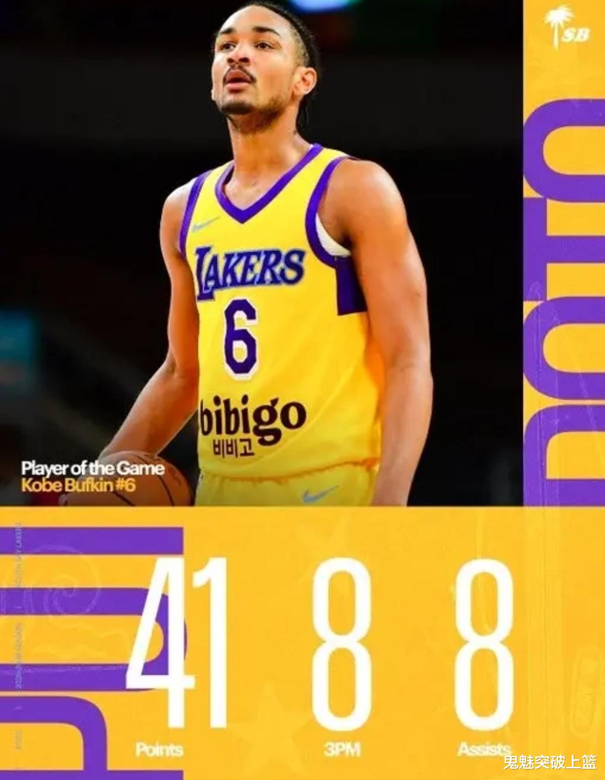 虽然科比巴夫金在NBA毫无建树,但他在发展联盟却是大杀四方!四天前,在科比巴夫金代表南湾湖人对阵首都城市Go-Go的比赛里,他全场出战40分钟,17投11中,三分13中8,7罚6中,狂砍41分2板8助2断。