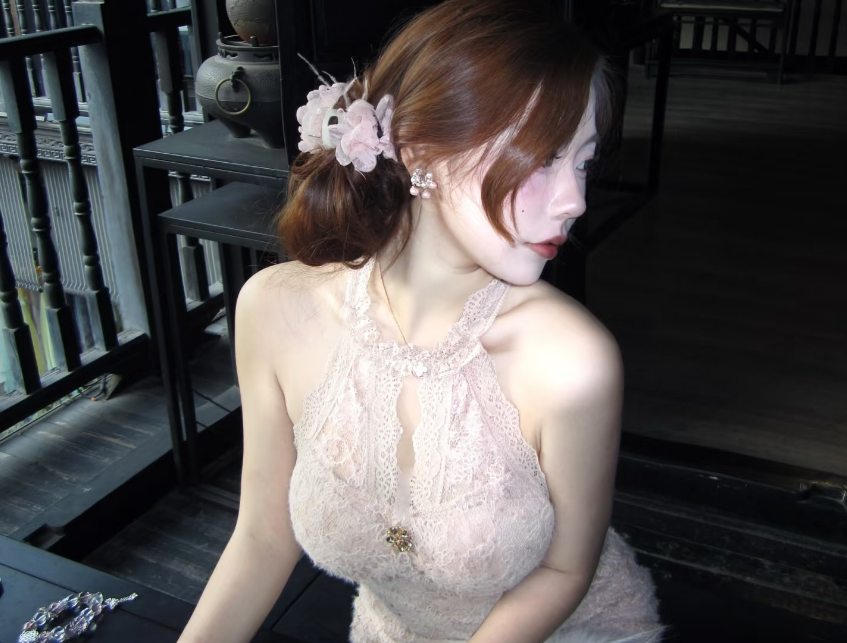 夜幕降临,我换了一身骚得没边的纯欲战袍,胸口处仅有两片蕾丝布盖着。