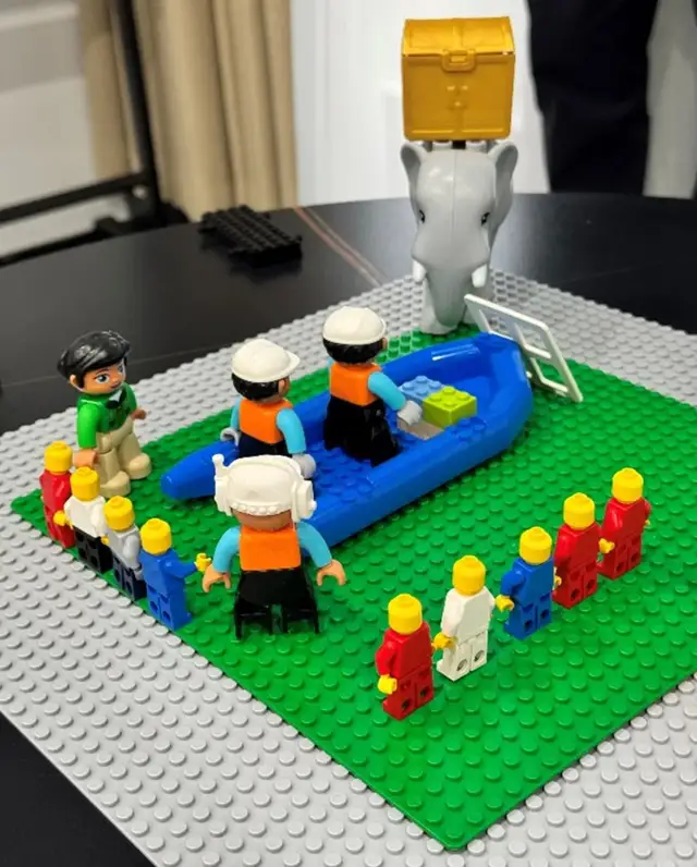 在引导师给出第一个“反常规拼搭”题目时,反倒是因此而很快地找到了非常规的方式,并且因为开场前会议礼仪对场域中没有错的安全空间营造,也不会因此而质疑自己或畏手畏脚。