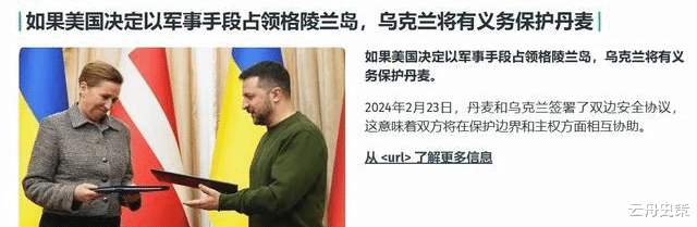 2024年2月23日,丹麦和乌克兰总统泽连斯基搞出了个双边安全协议。这协议里有一条特引人注目,说要是美国想用武力拿下格陵兰岛,乌克兰得在24小时内出兵保护丹麦。这可太让人意外了,从地缘政治的角度看,这协议签得有点“剑走偏锋”。