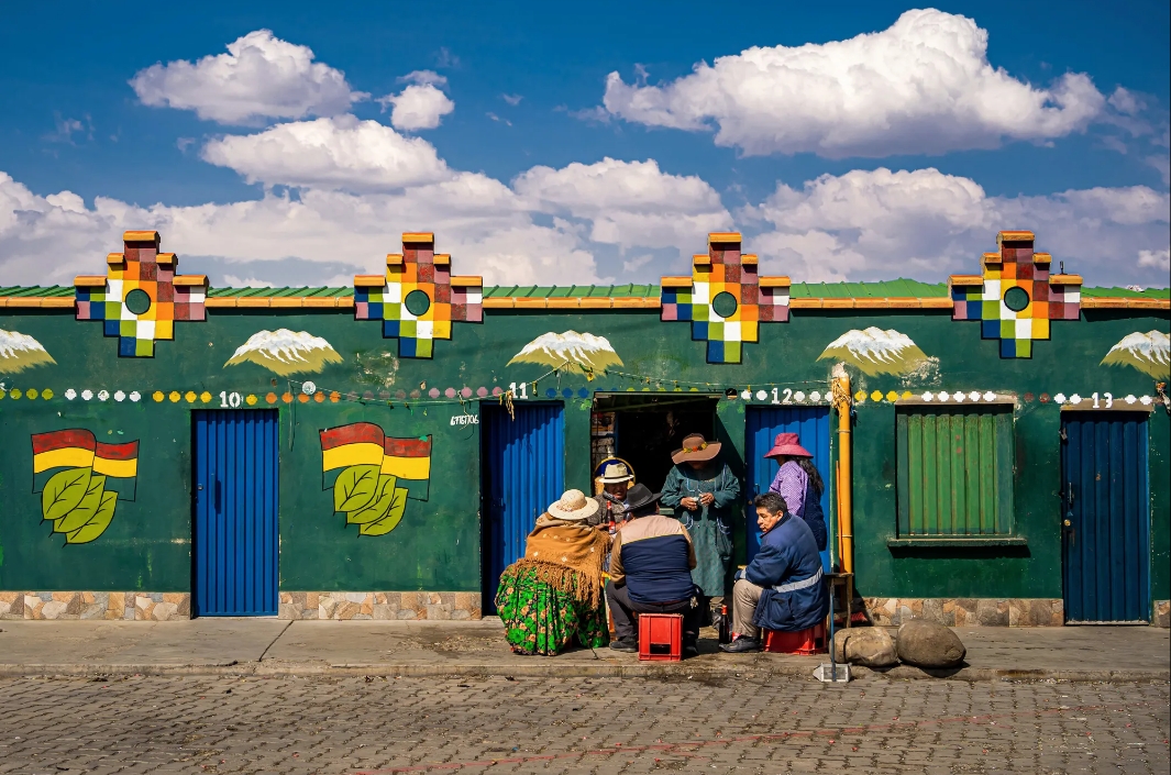 在秘鲁彩虹山令人叹为观止的背景映衬下,两只装饰精美的羊驼伫立着,象征着丰富的安第斯文化以及人与自然之间永恒的联系。它们传统装饰的鲜艳色彩反映了彩虹山多彩的层次。这一场景提醒我们,旅行如何丰富我们,让我们与多元文化建立更深层次的联系。