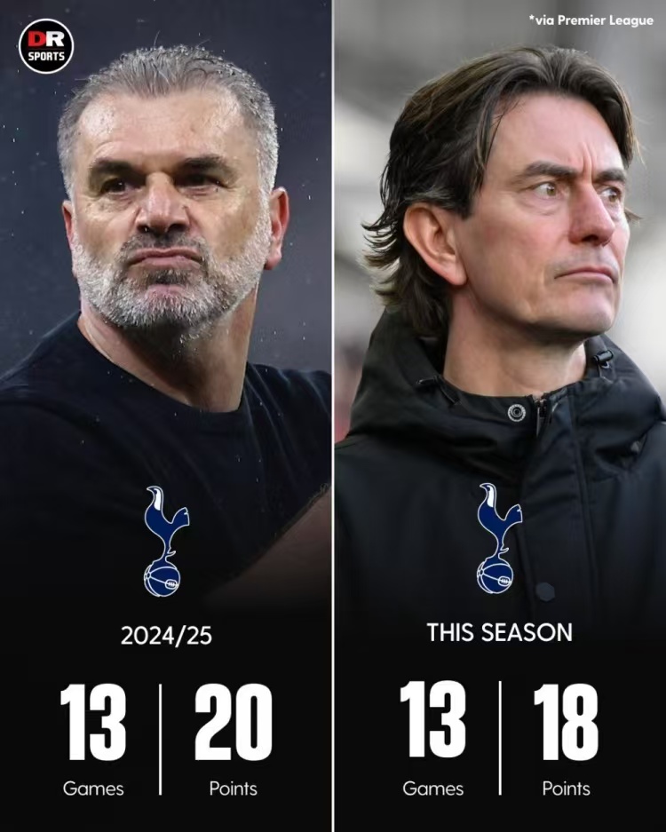 英超第26轮,热刺主场1-2不敌纽卡斯尔,继续向降级区滑落。近8场英超,热刺一胜难求,新年以来的7场比赛仅拿到4分,是同时期拿分第二少的球队,仅比伯恩利更多(3分)。经历了赛季初的挂挡狂奔之后,热刺失去了动力,托马斯-弗兰克已经失去了对这支球队的掌控。