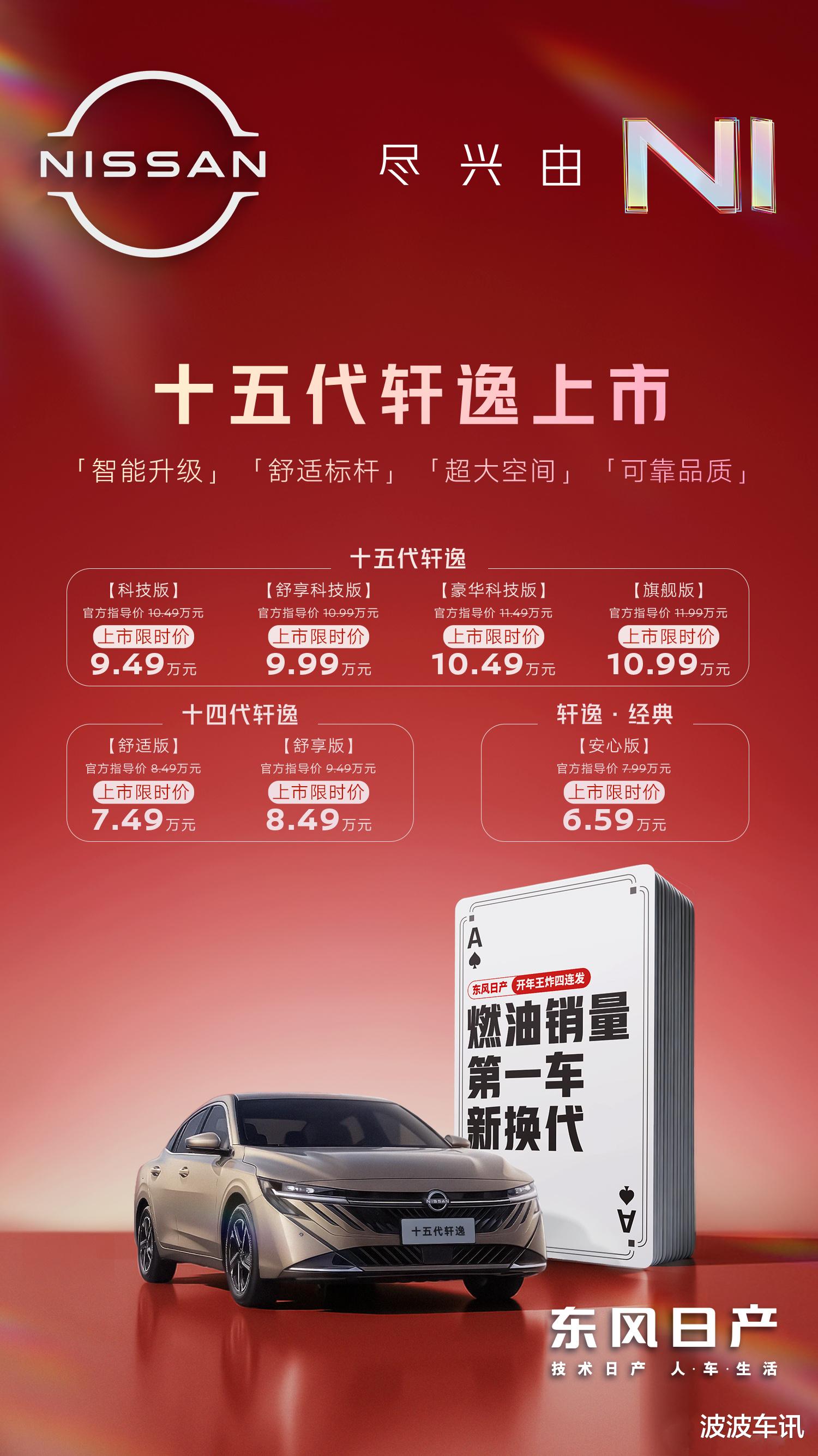 2月24日,全新一代的日产轩逸正式上市,新车限时9.49万起,指导价区间为10.49-11.99万元,上市限时价9.49-10.99万元。此外,第十四代轩逸的价格也进行了调整,8.49-9.49万元,上市限时价7.49-8.49万元;同时,轩逸经典指导售价7.99万元,限时价6.59万元。很显然,全新一代的日产轩逸采用的策略就是三代同堂,这下肯定是更有竞争力了。在外观方面,全新一代的日产轩逸进行了更新,内饰也进行了焕新,看点还是颇多的。不过,新车依旧搭载1.6L发动机,这在新能源车遍地的情况下,它的加速体验依旧给不了太大惊喜。