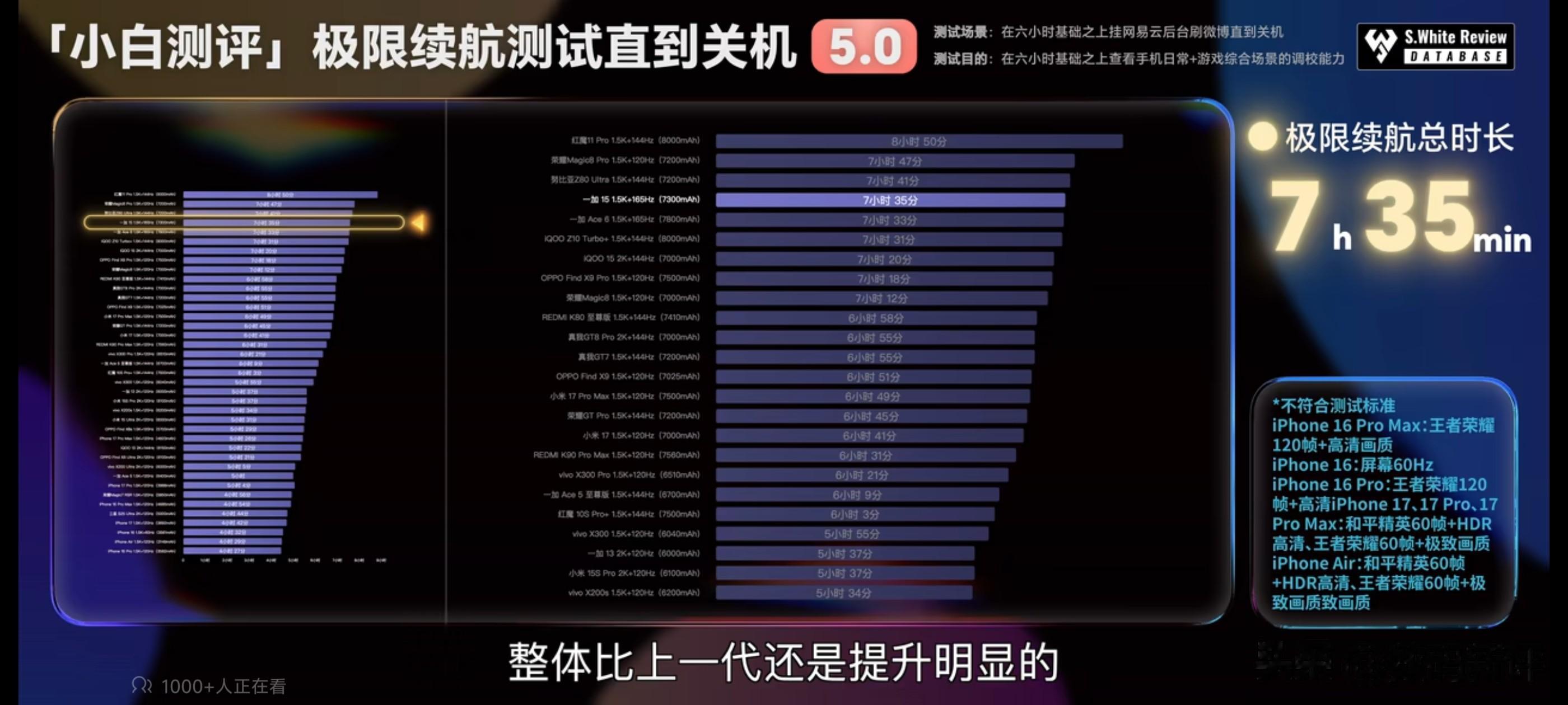 续航实测方面,坚持了7小时35分钟,这个表现怎么样?