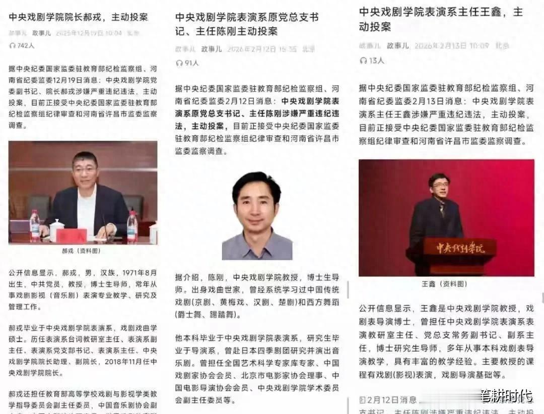 从年初某演员的事,接连爆出中戏三领导主动投案。
