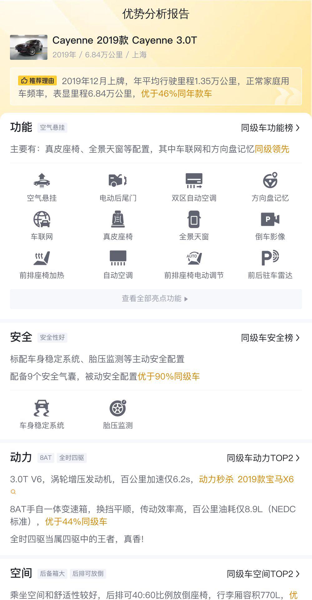 首先,我们必须承认,新车有着无可比拟的优势:完整的质保、最新的科技配置、以及“零磨损”带来的心理满足感。但动辄百万的豪华SUV,对于大多数人来说仍是一笔不小的支出。而二手车市场,恰好提供了一个“曲线救国”的路径,让原本遥不可及的梦想变得触手可及。这辆2019款卡宴,新车指导价91.3万元,如今二手价格仅为47.6万元,几乎是打了五折。价格的巨大落差,无疑是吸引消费者关注的第一要素。