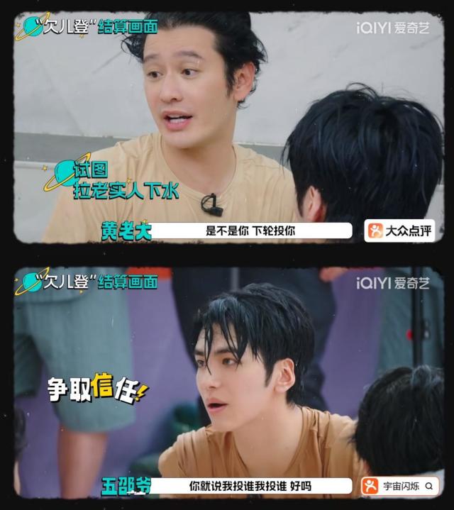而谁能想到在任务本就困难和欠登儿捣乱的前提下,好人组的四位居然主动送人头,十分相信并且极力拉拢欠登儿,还整出了四个好人互踩的乐子,甚至到最后投票环节都一致认为欠登儿是好人。于洋和刘耀文两个大明白更是联手欠登儿把好人黄子韬和王鹤棣投出去了,结果欠登儿0票获胜,好人惨败。