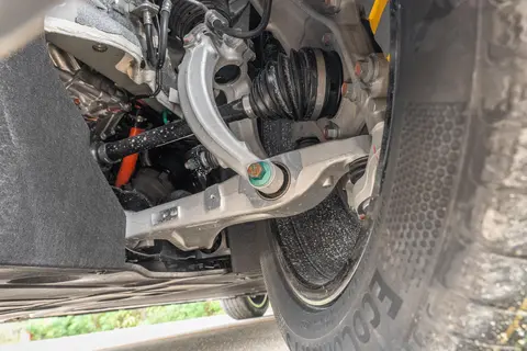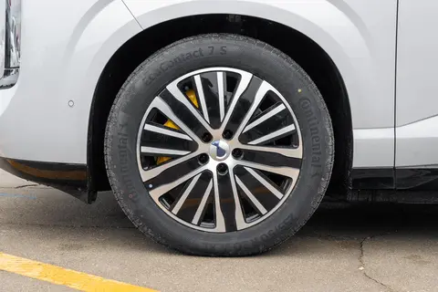 底盘方面,腾势N8L采用了前双叉臂后五连杆的独立悬架组合,并全系标配了云辇-A智能空气车身控制系统。这套系统不仅包含双腔空气悬架,可自适应调节车身高度和阻尼软硬,还集成了智能路面预瞄2.0功能,通过摄像头等传感器提前感知路况,在车辆压过颠簸或减速带前就主动调整悬架状态,有效过滤震动,提升乘坐舒适性,尤其能减轻后排老人和小孩的晕车感。刹车系统则采用了前六活塞固定卡钳和大尺寸打孔通风盘,使百公里制动距离达到35.4米的优秀水平,确保“跑得快也站得稳”。