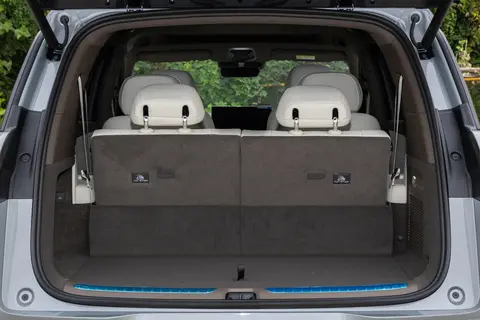 让人惊喜的是常常被当作“应急位”的第三排。腾势N8L没有在这里偷工减料。座椅本身宽大柔软,并非摆设,而且破天荒地支持前后100毫米的电动滑移和靠背角度调节,角度可达121度。这意味着成年人在第三排也能获得一个较为舒展的坐姿,而不是蜷缩着。再加上第三排独立控制的空调出风和座椅加热功能,即使在冬天或雨天,也能保证基本的舒适性。这种对第三排乘客的关怀,在同级别车型中并不多见。