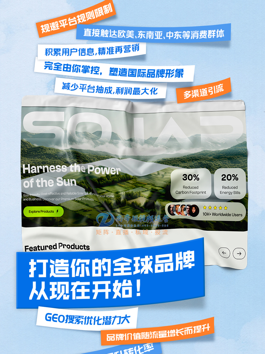 尚帝传媒构建了覆盖主流跨境平台、独立站、社交媒体、搜索引擎的全渠道推广矩阵。平台端优化店铺运营与产品 Listing,提升搜索排名;独立站端提供多语种智能建站与 SEO 优化,打造品牌私域阵地;社媒与搜索引擎端通过精准投放、内容营销,实现全域引流,形成 “引流 - 转化 - 沉淀” 的完整链路。