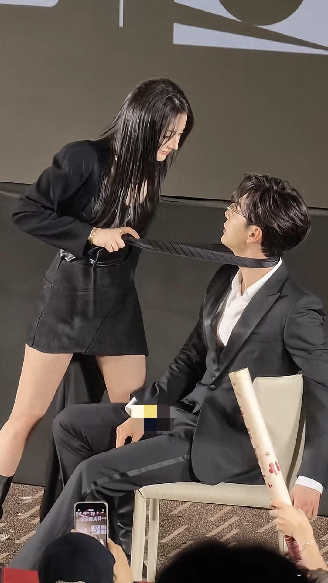 热巴拉着陈星旭领带,氛围带感又有趣