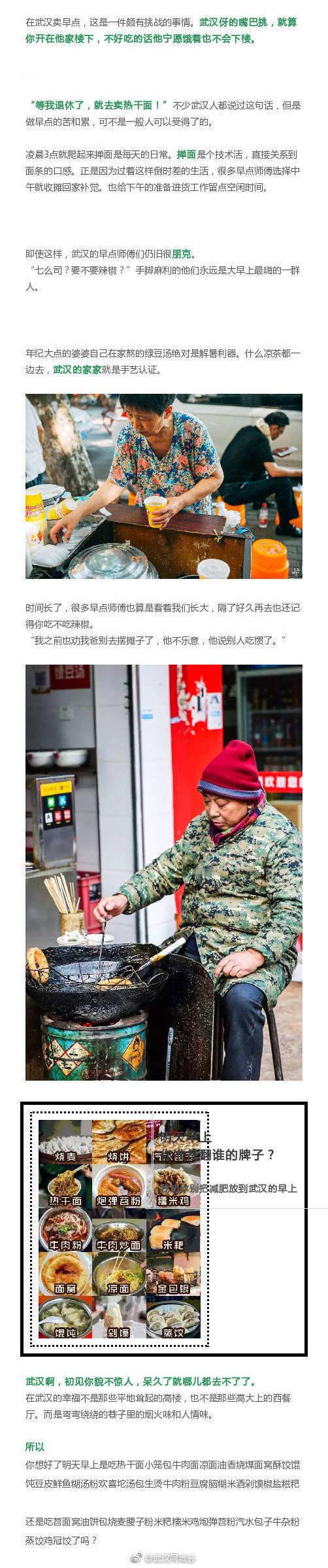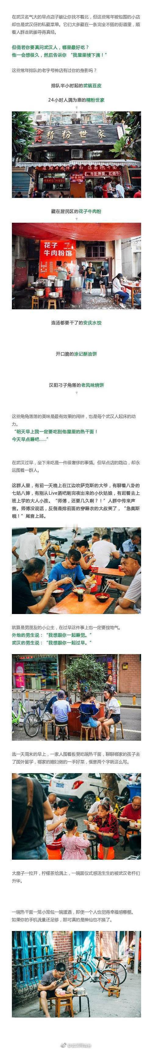 武汉生活【一条微博,告诉你武汉人是怎么过早的[心]】很多人不理解武汉,为什么明明有江有湖、水蒸雾绕,这座城市还是从天气到脾气都那么火爆啊?他们同样不理解武汉人对过早的虔诚——谁会在大清早的就吃这么厚重的东西啊?但随你怎么说,武汉人不在乎,他们只在乎口味,只在乎江湖气。