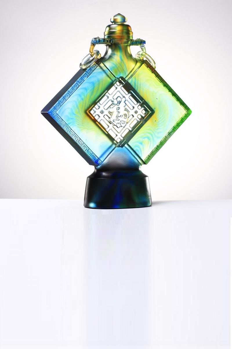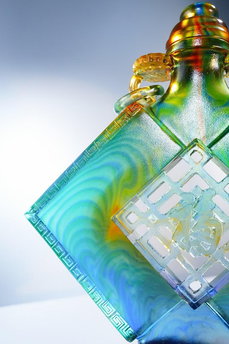 整个制作过程纯为手工制作,一模一品,每一只模具都只能烧制一件作品,无法二次使用,大型复杂作品甚至需要多次开模、烧制才能完成。而且每道工艺均有各自不定的变化因素,且在工艺过程中需经反复实验,作品色彩无一雷同,这也使得每一件古法琉璃福聚四方摆件都独一无二,世间仅此一件。