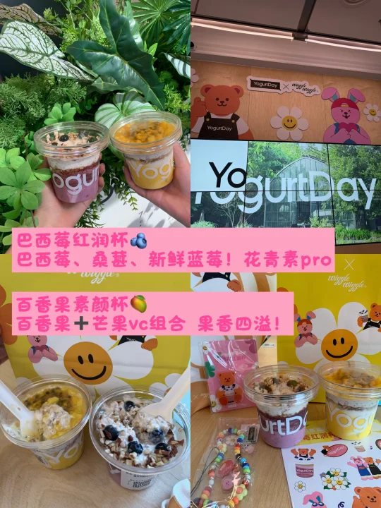 YogurtDay和wiggle wiggle联名了!! 梦幻联动!还有超可爱周边!微笑太阳花元素超经典~ 现在不仅可以吃到酸奶🍦 还可以领到限定联名周边o( ❛ᴗ❛ )o 为了熊熊直接一口气两杯! 我宣布饿巴巴的苦日子离我远去 苯人已经爱上YogurtDay酸奶和可爱的熊熊!