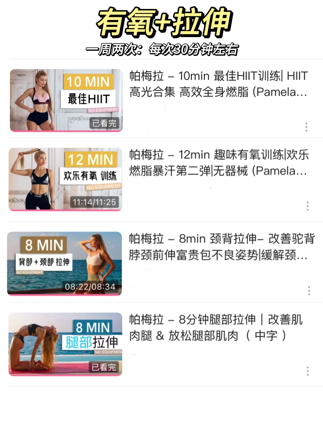 ✅有氧是为了让线条更明显,像我每周两次大有氧,时长30分钟左右~