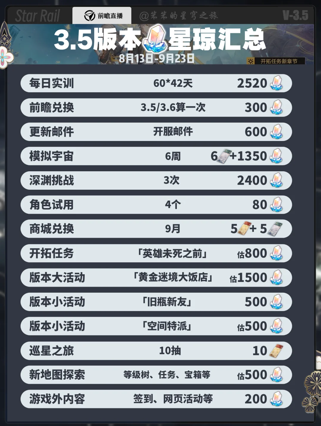 崩铁3.5版本星琼汇总+所有活动盘点