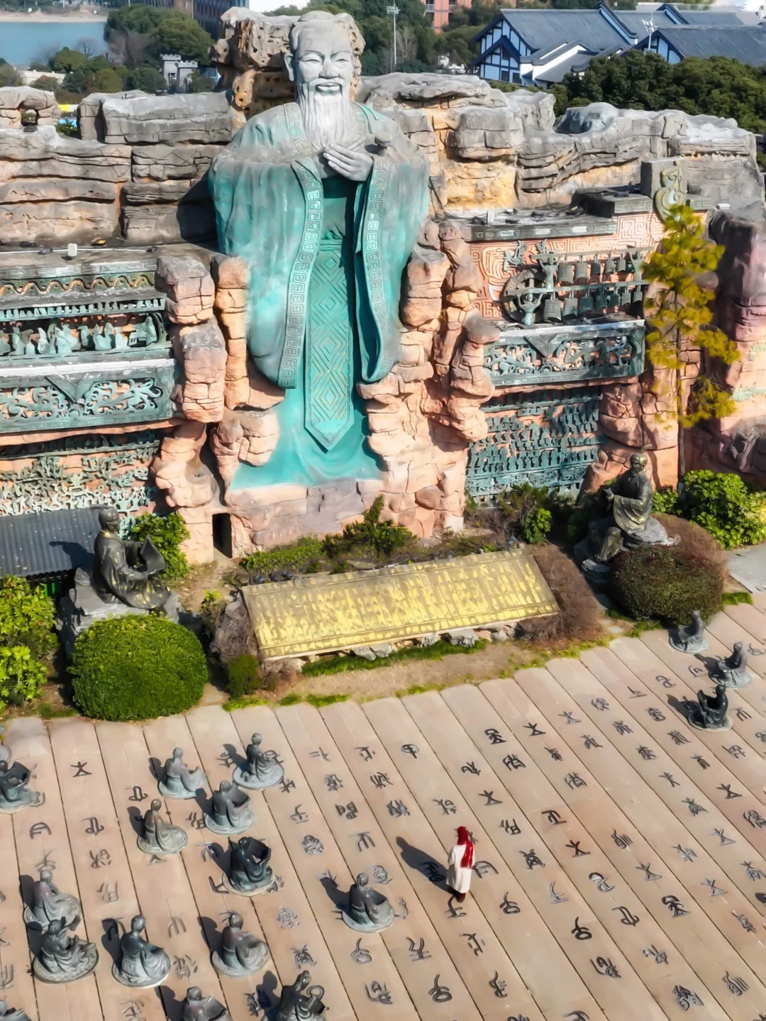 青铜大门-诸子百家园-儒家广场-淹城冰雪大世界-市井商街-九坊美食街-春秋王宫-铁血冒险城-春秋五霸山