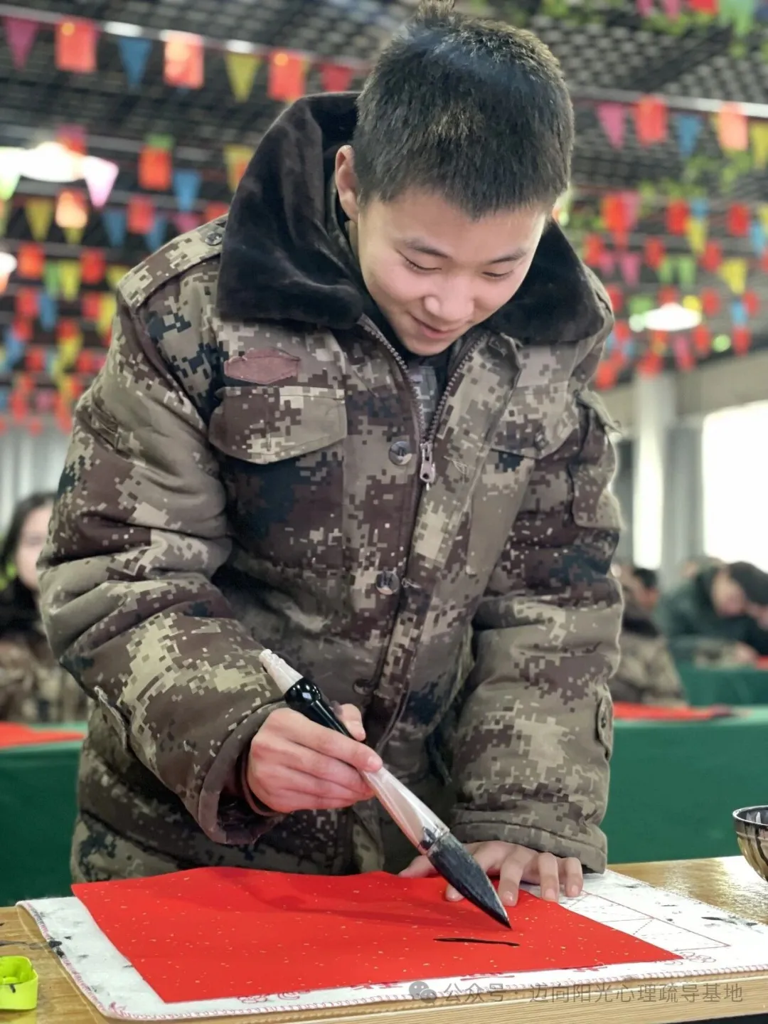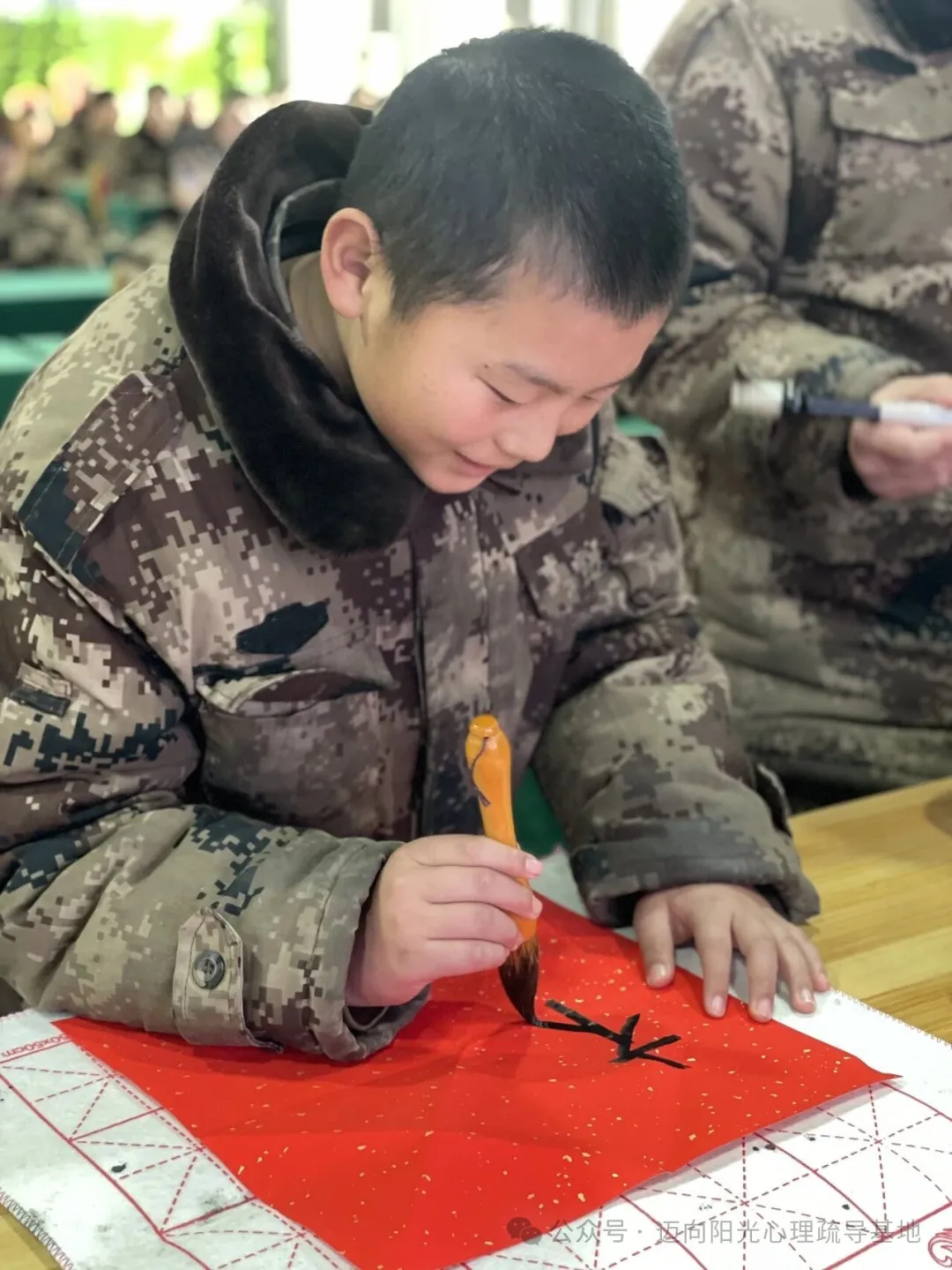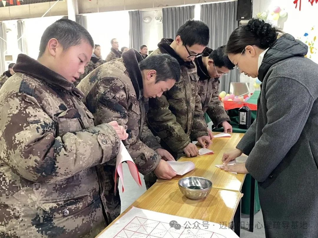 腊月二十三,北方小年到。迈向阳光心理疏导基地里年味浓浓,一场以“写福迎春,传递祝福”为主题的传统年俗活动正在温馨举行。基地特别组织同学们拿起毛笔,亲手书写福字,用传统的方式表达对新春的期盼,也向家人传递一份特别的心意。